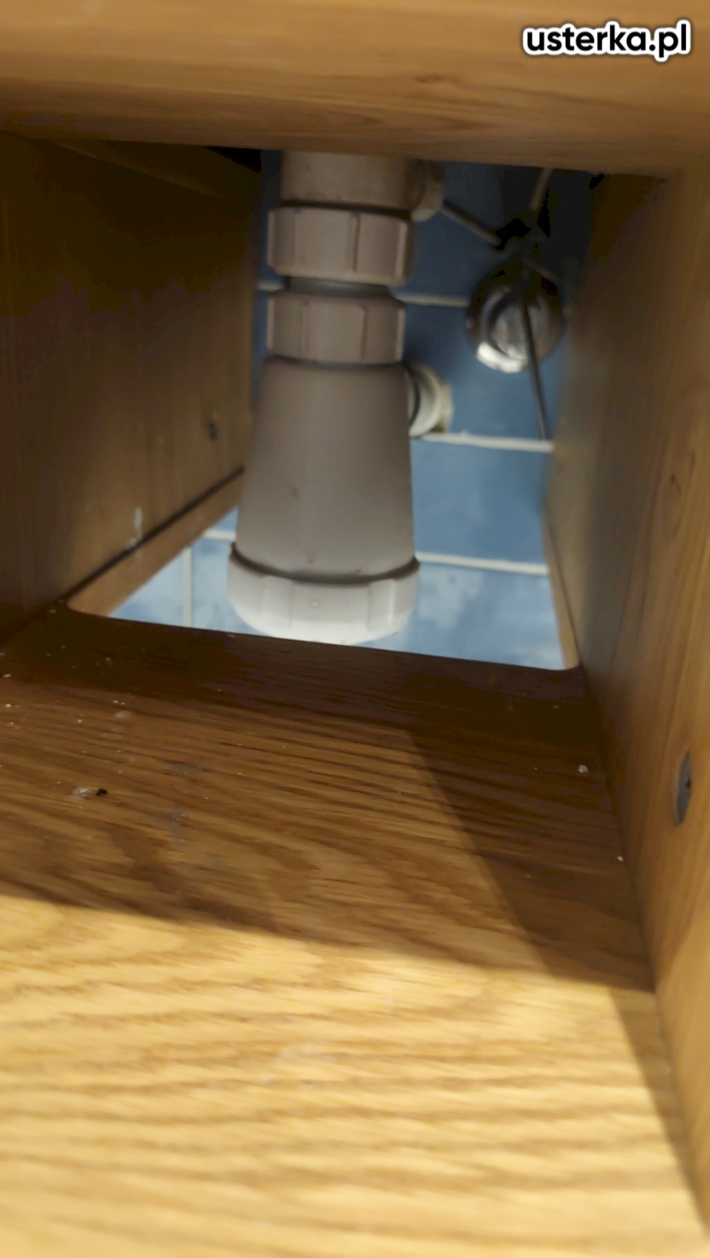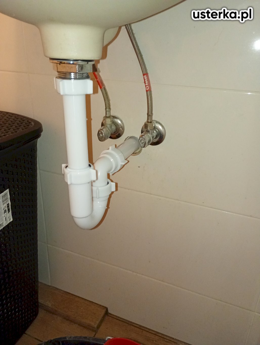 Wymieniono syfon pod umywalką w łazience oraz nałożono nowy silikon.
