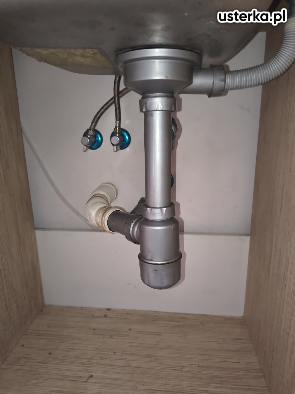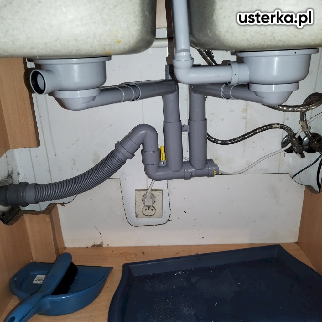 Udrożniono odpływ i rury kanalizacyjne pod zlewem; instalacja działa prawidłowo.
