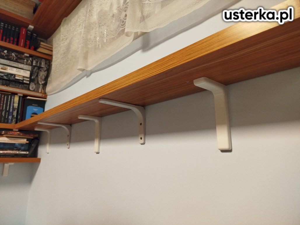 Wzmocniłem mocowanie półki, montując dwa dodatkowe wsporniki oraz wymieniając stare kołki i wkręty na nowe.