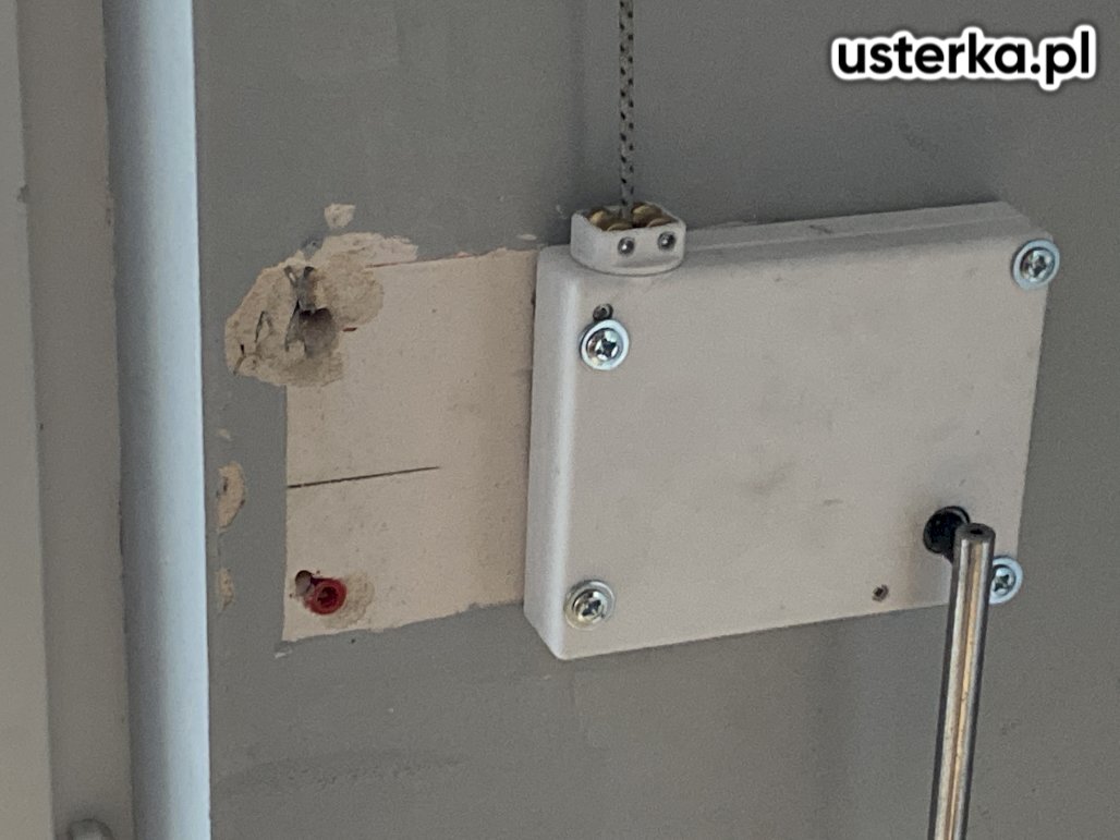 Naprawa mechanizmu rolety – ponowne zamocowanie korby do ściany.