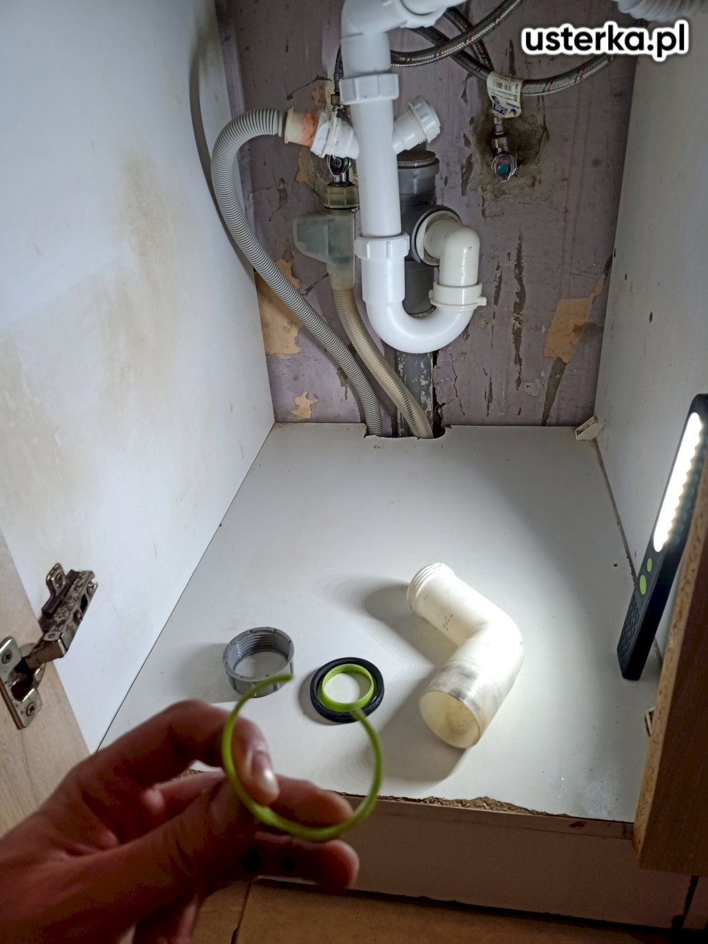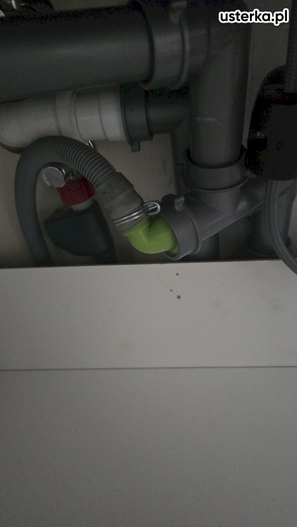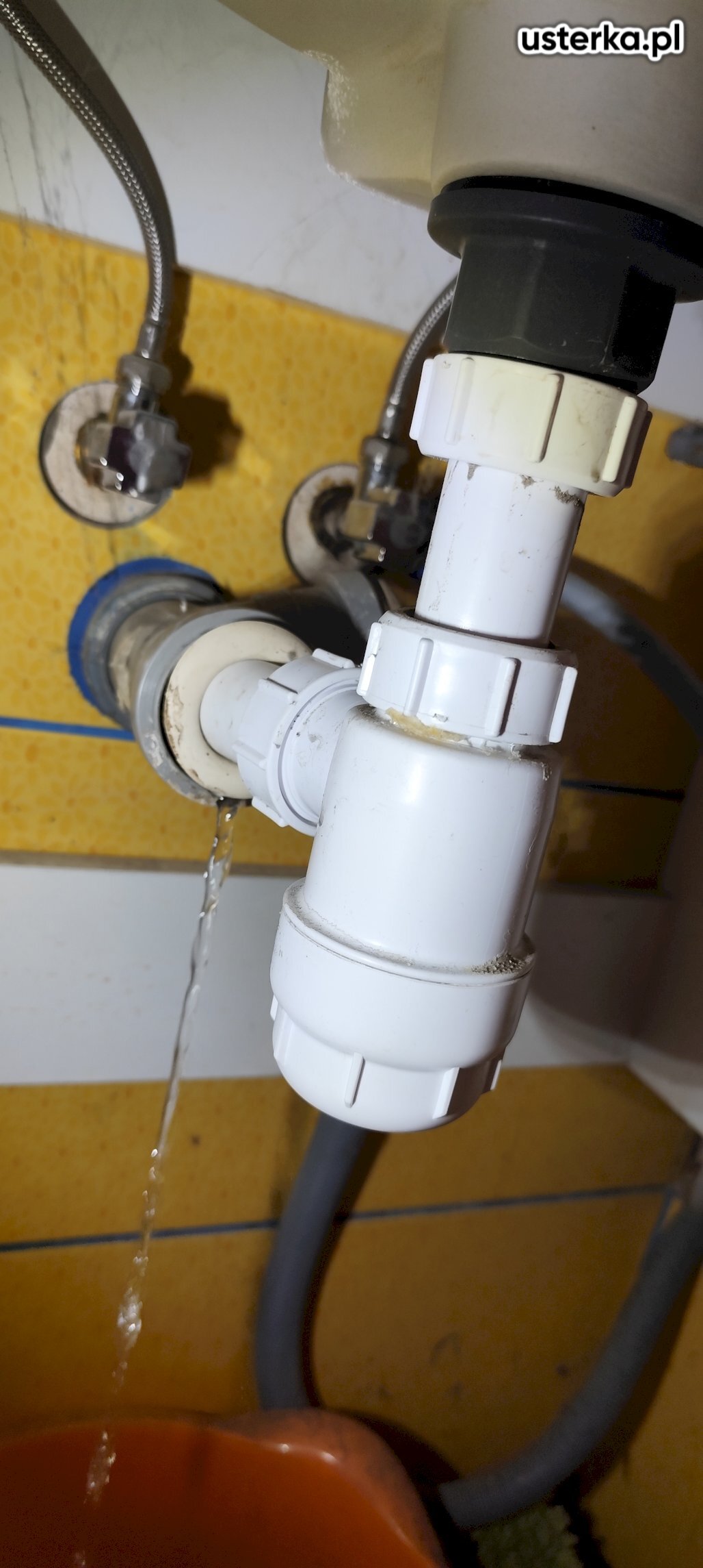 Przerobiono syfon pod zlewem i wymieniono uszczelki. Po naprawie nie stwierdzono wycieków. Sprawdzono również okolice bojlera i dokręcono wężyki.