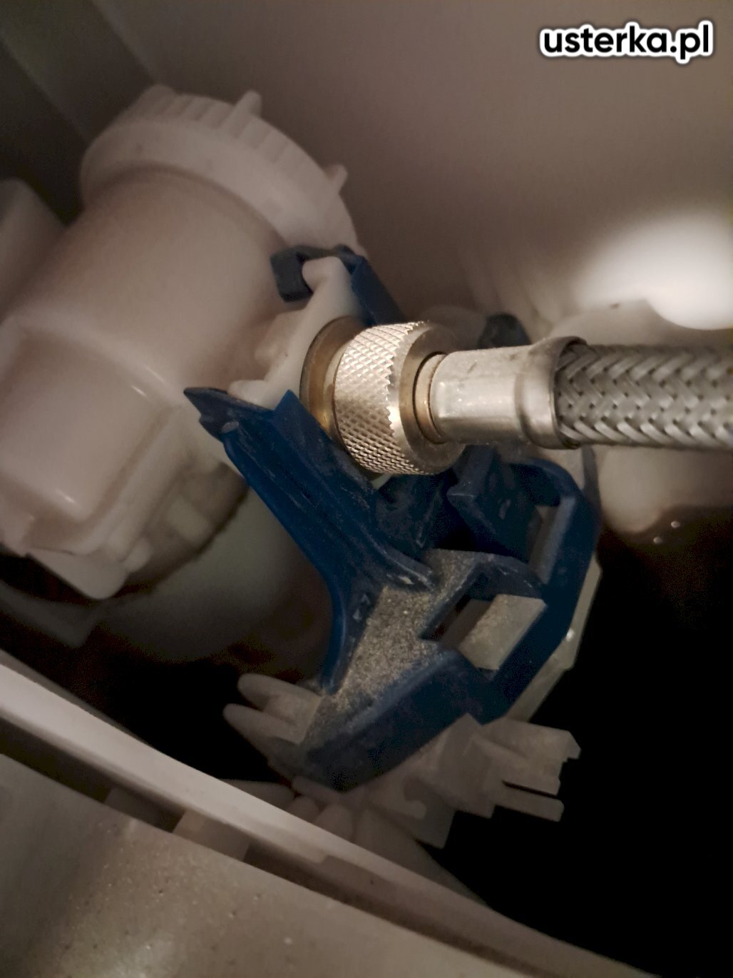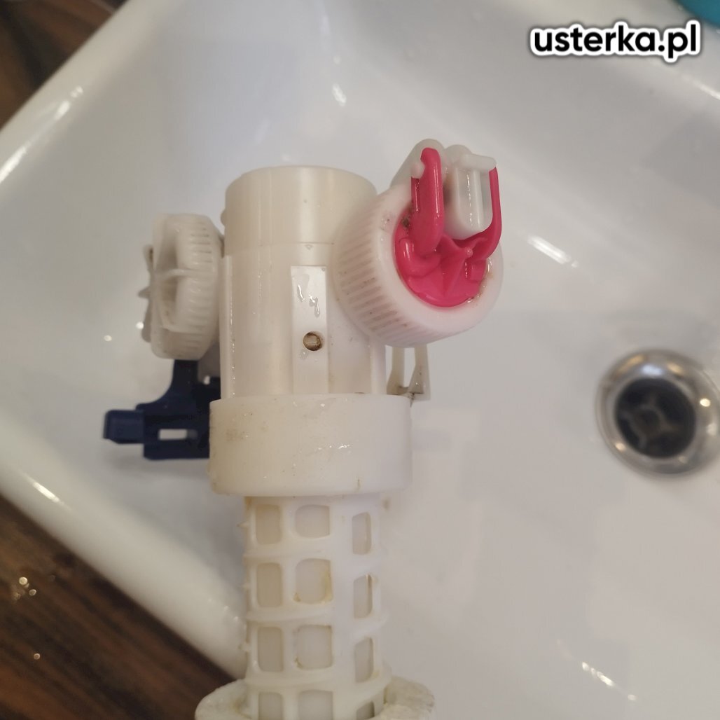 Zgłoszenie dotyczyło niesprawnej spłuczki WC kompakt: zbiornik napełniał się bardzo wolno, a woda stale spływała do muszli. Usterkę usunięto poprzez wymianę zaworu napełniającego. Po naprawie spłuczka działa prawidłowo.