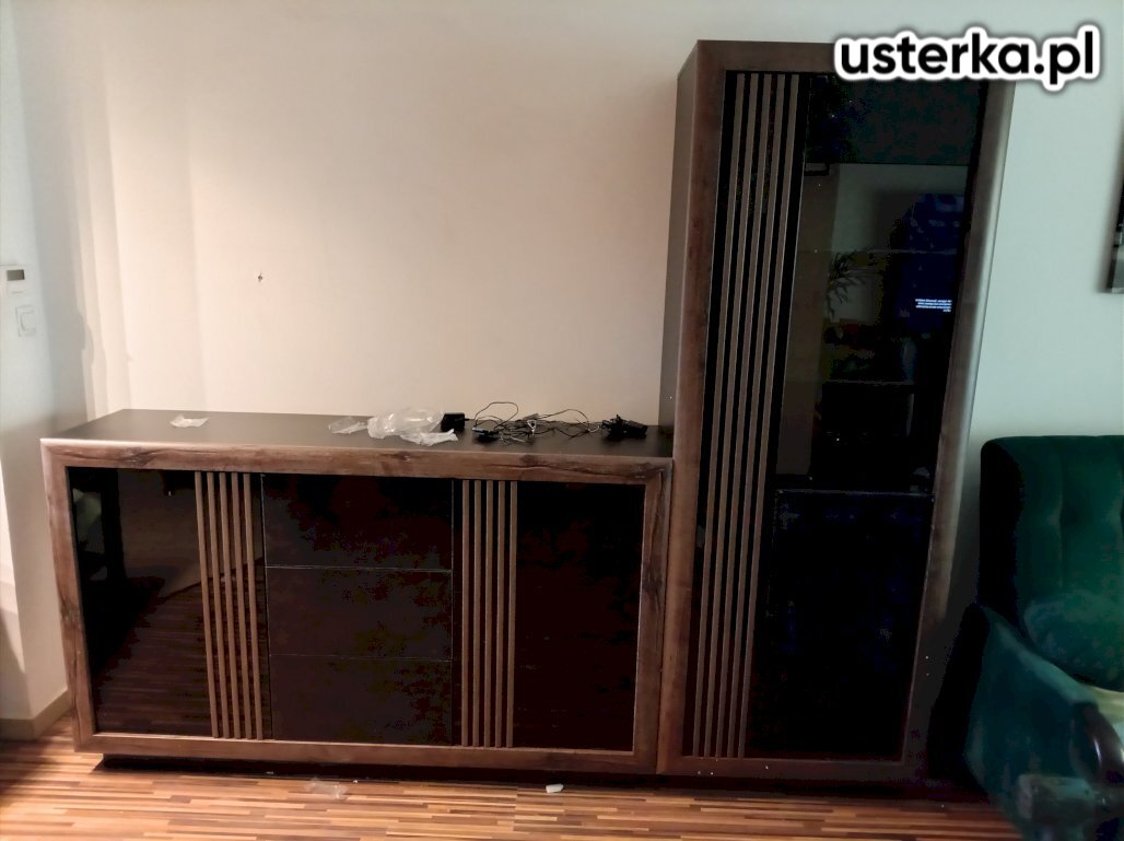 Zrealizowano montaż komody i witryny zakupionych w salonie Agata Meble. Skręcono wszystkie elementy zgodnie z instrukcją producenta, zamontowano zawiasy, fronty oraz części szklane. Po zakończeniu prac wyregulowano drzwi, sprawdzono stabilność i poprawność działania mebli. Meble zostały ustawione i przygotowane do użytkowania.