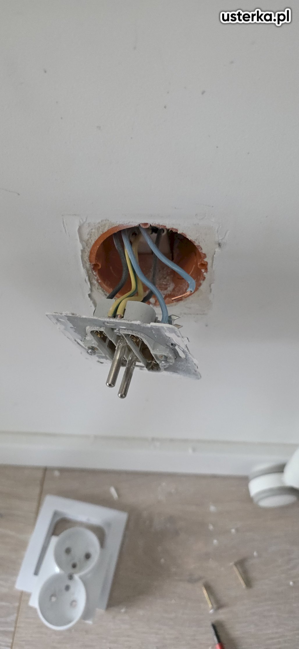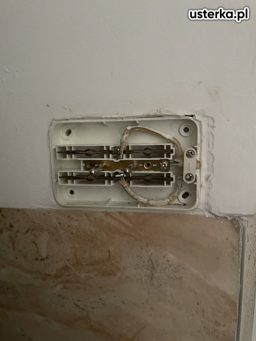 Dodatkowo w lokalu widoczne są liczne luźne i poobcinane przewody, co wskazuje na wcześniejsze problemy z instalacją.