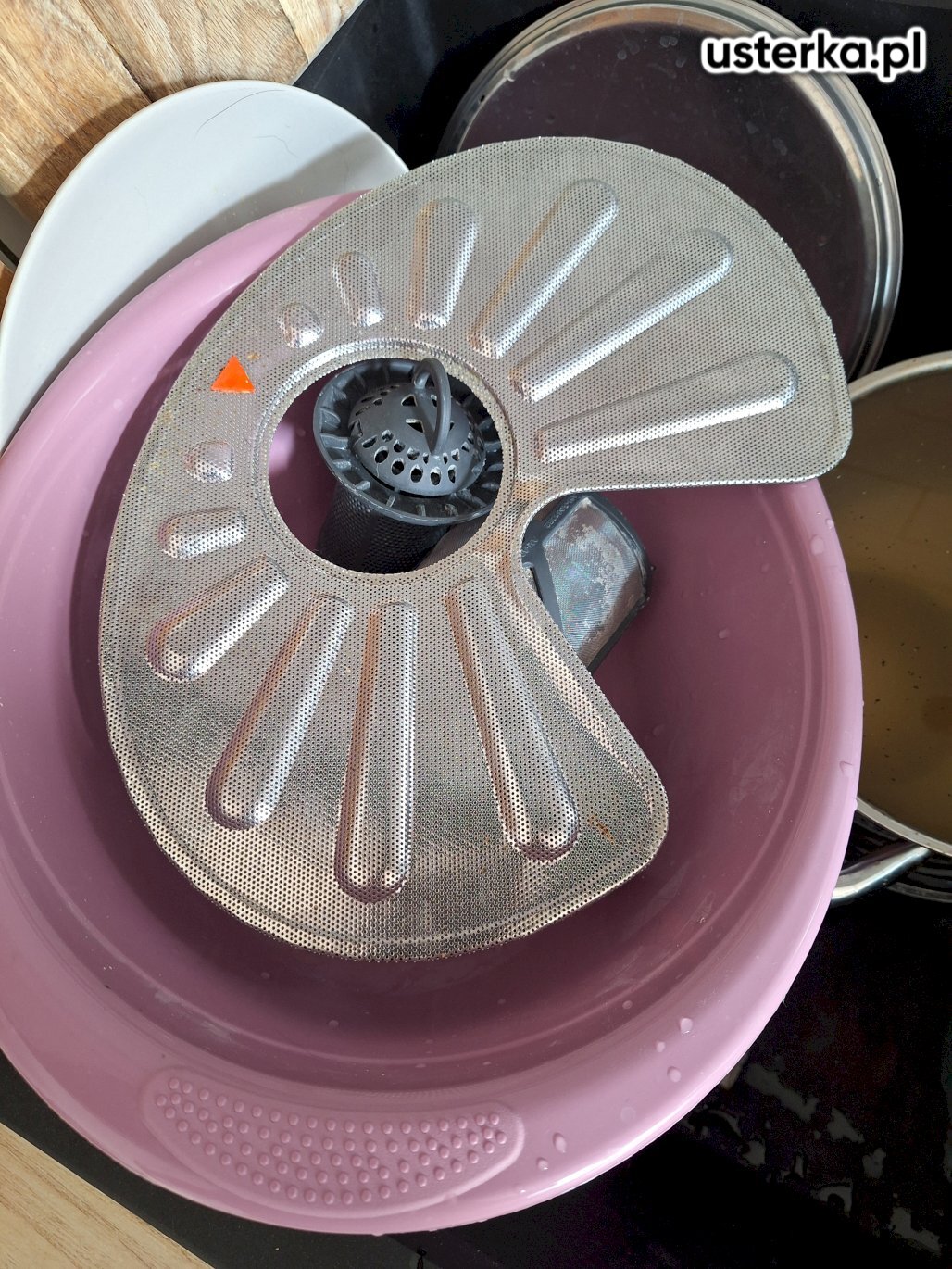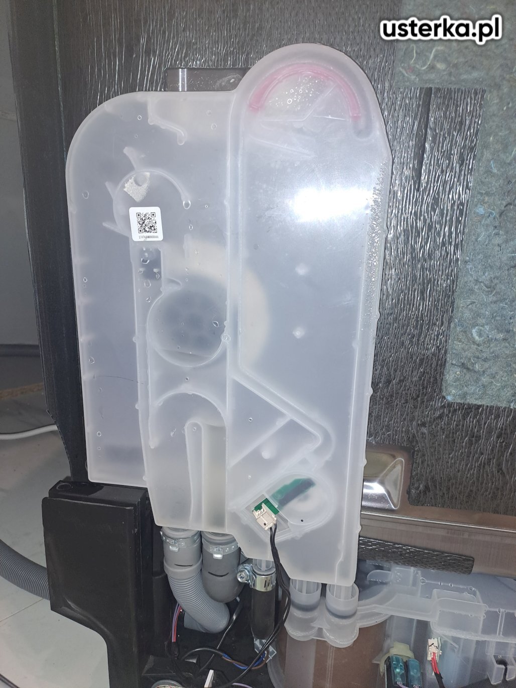 Przyczyną problemu była zatkana rura kanalizacyjna pod zlewem. Po jej udrożnieniu woda odpływa prawidłowo i nie cofa się do zlewu podczas pracy zmywarki.