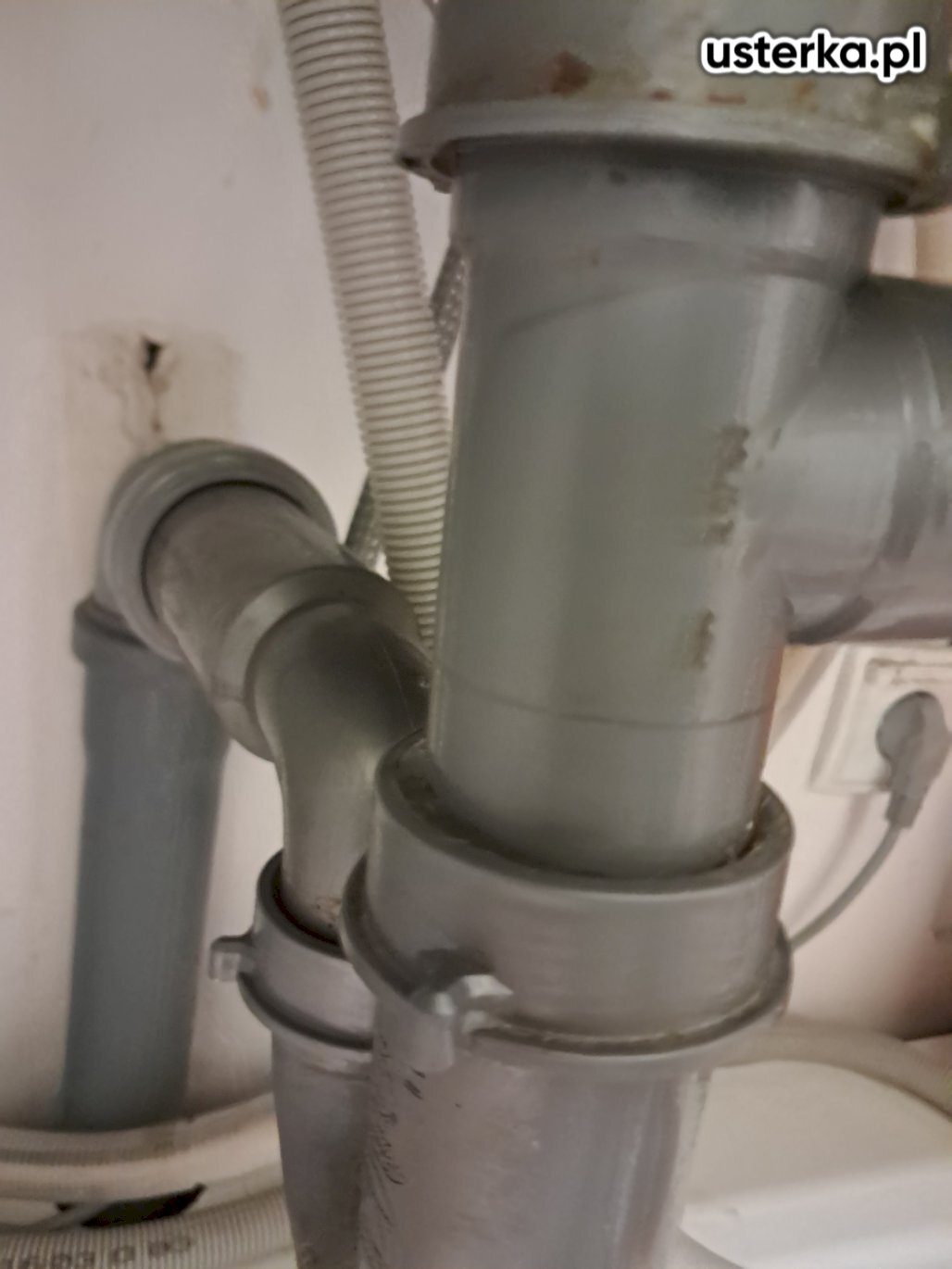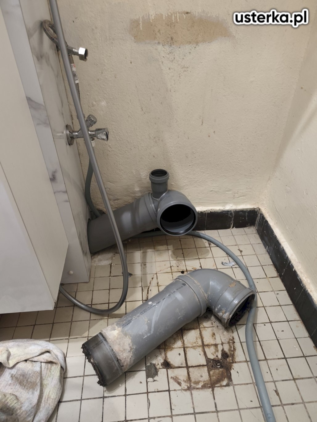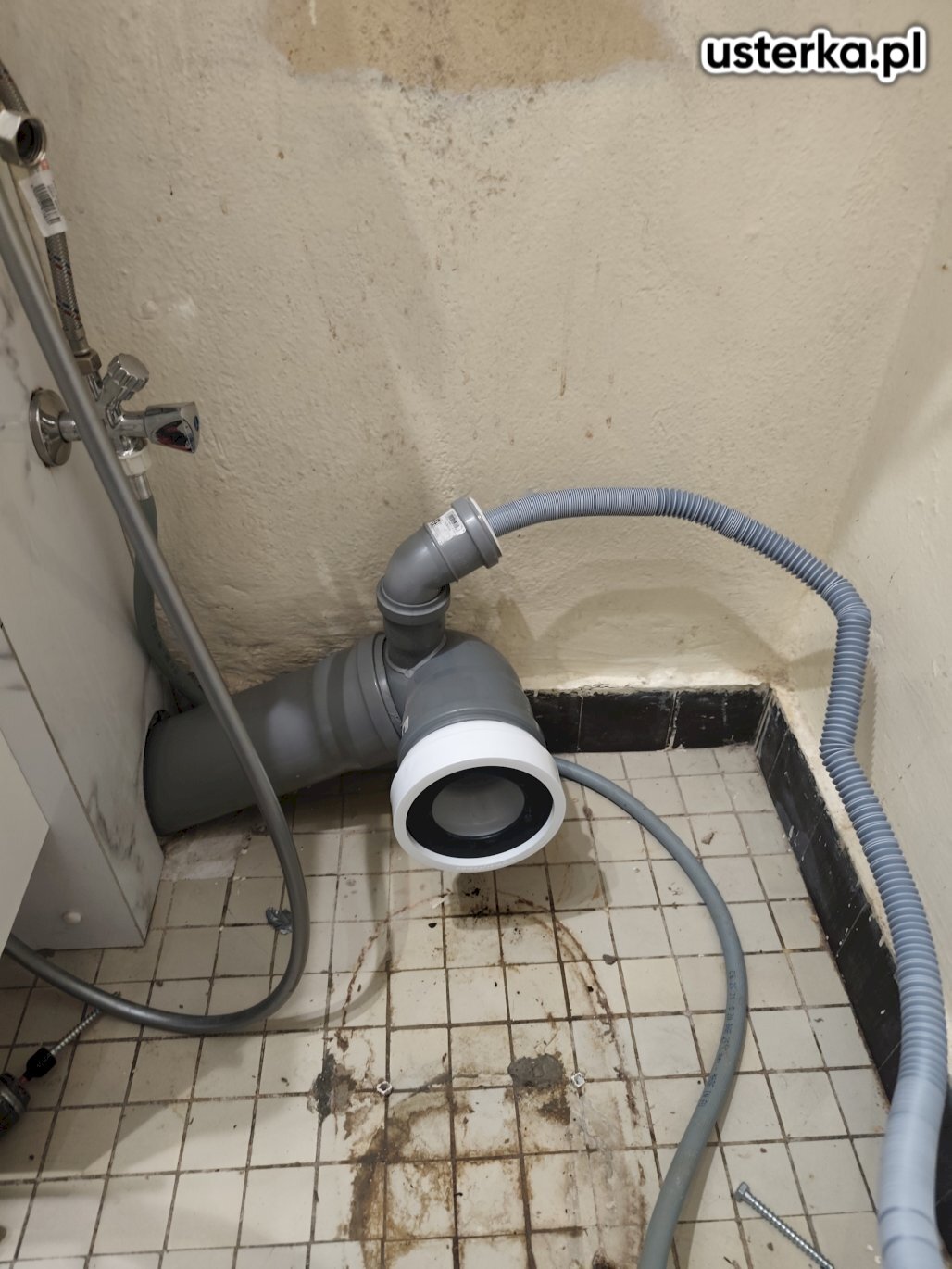 Wymieniono odcinek rury przy podłączeniu WC do odpływu oraz podłączono odpływ pralki do istniejącej instalacji.