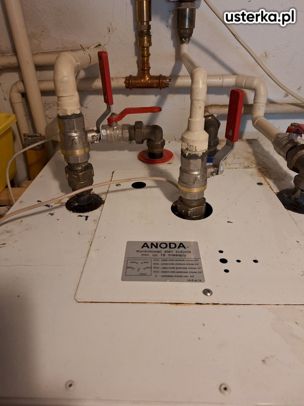 Wymieniłem dwa zawory kulowe przy zasobniku wody, usuwając przyczynę przecieku.