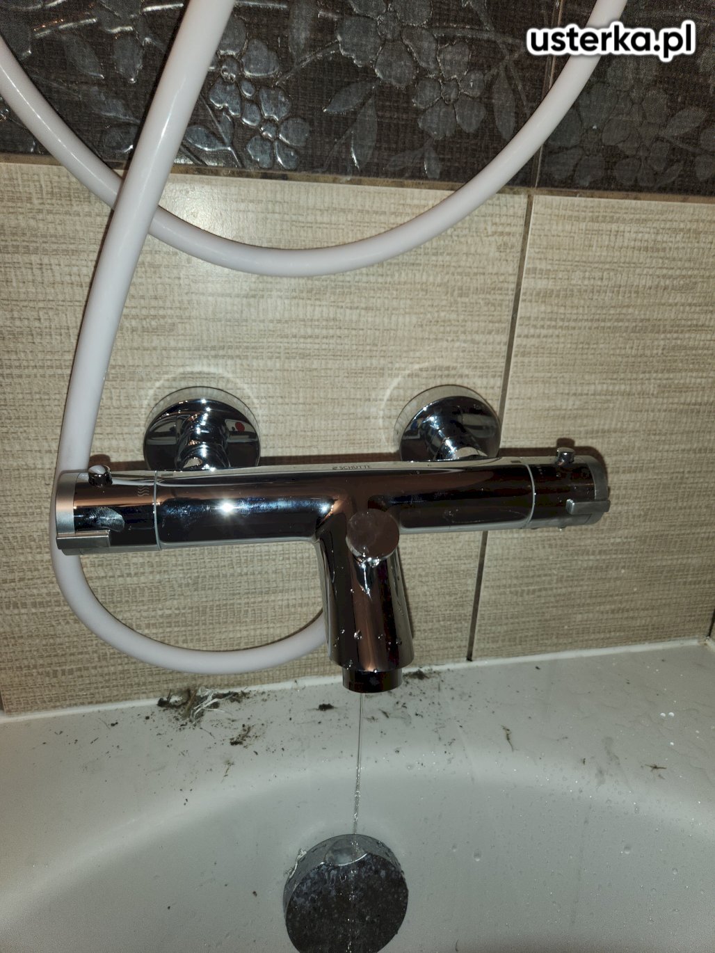 Sprawdzono szczelność brodzika. Wymieniono silikon w miejscu budzącym wątpliwości oraz dokręcono odpływ.