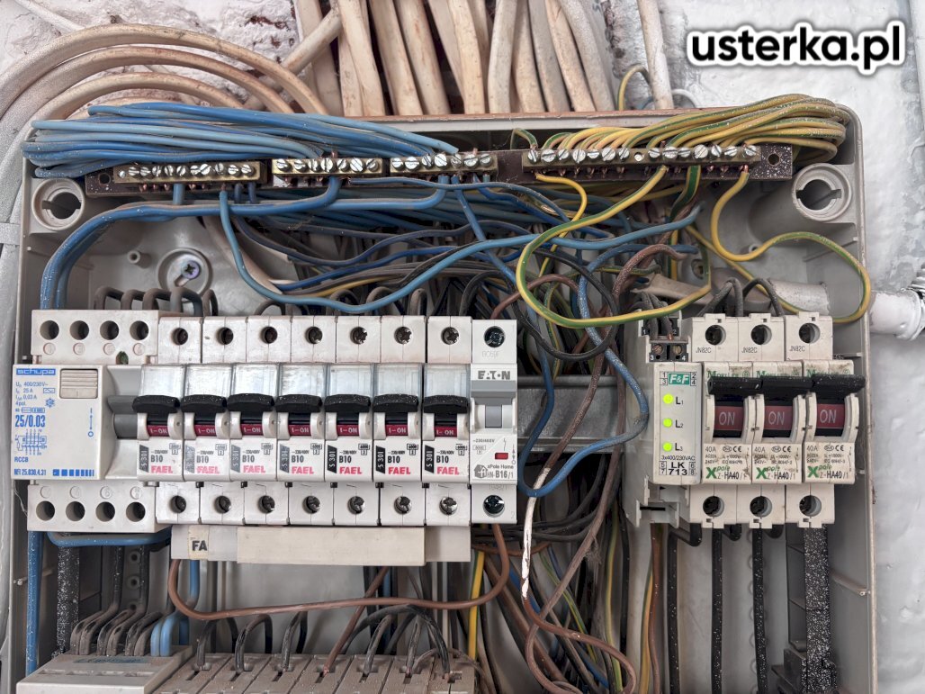 Sprawdzono instalację elektryczną w lokalu. W rozdzielnicy wymieniono złączkę przewodu neutralnego oraz 8 złączek w czterech puszkach, gdzie wcześniej przewody były skręcone.