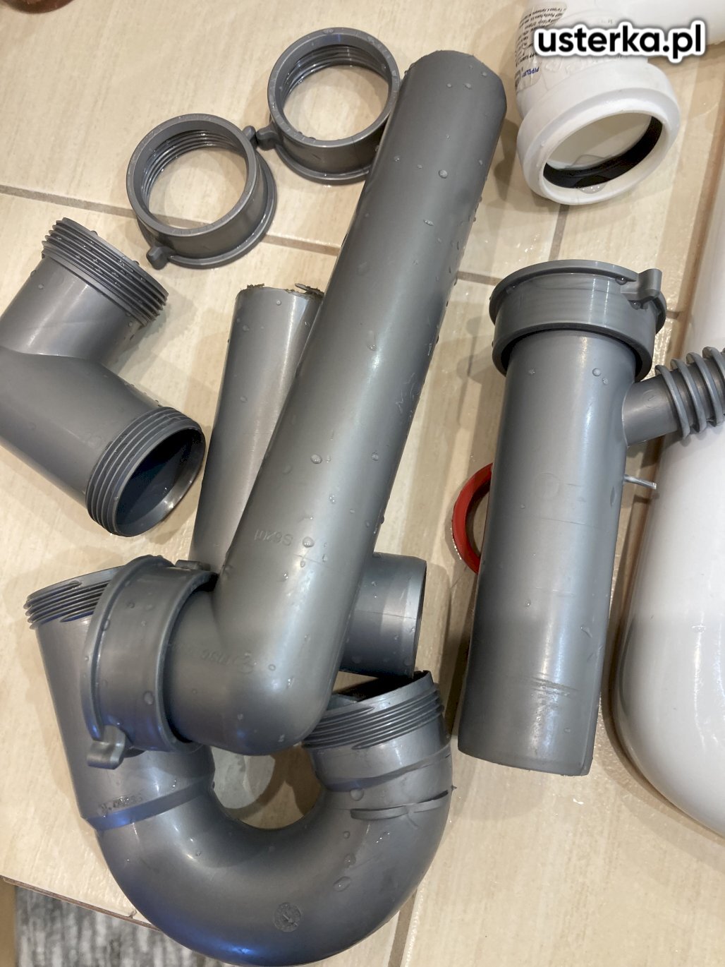 Na życzenie klienta zamontowano rurę kanalizacyjną 50 mm oraz cztery pierścienie zaciskowe. Po zakończeniu prac instalację uszczelniono i sprawdzono szczelność w obecności klienta.