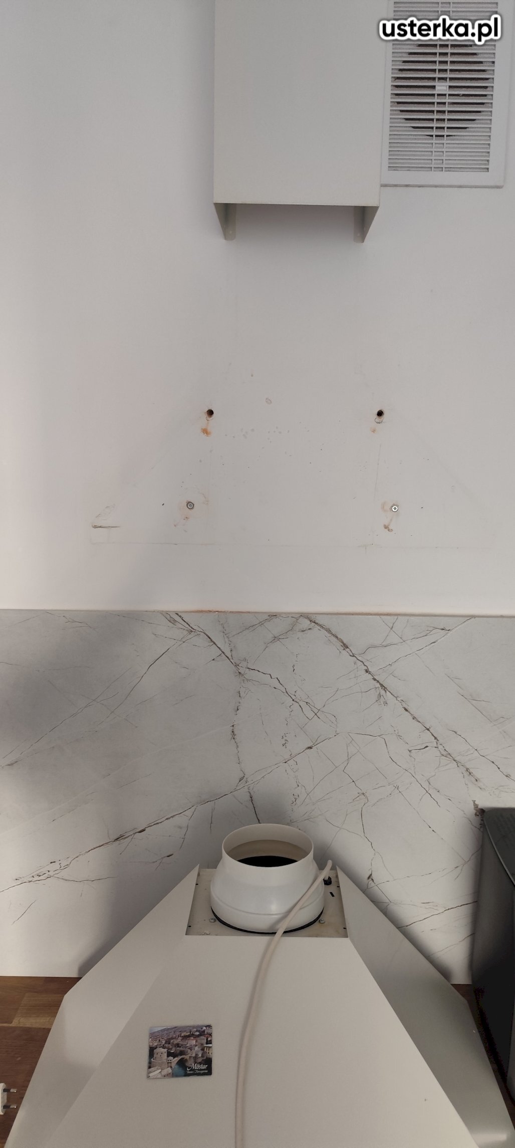 Zlecenie polegało na wymianie kołków montażowych na większe oraz ponownym zamocowaniu okapu, który odpadł ze ściany.
