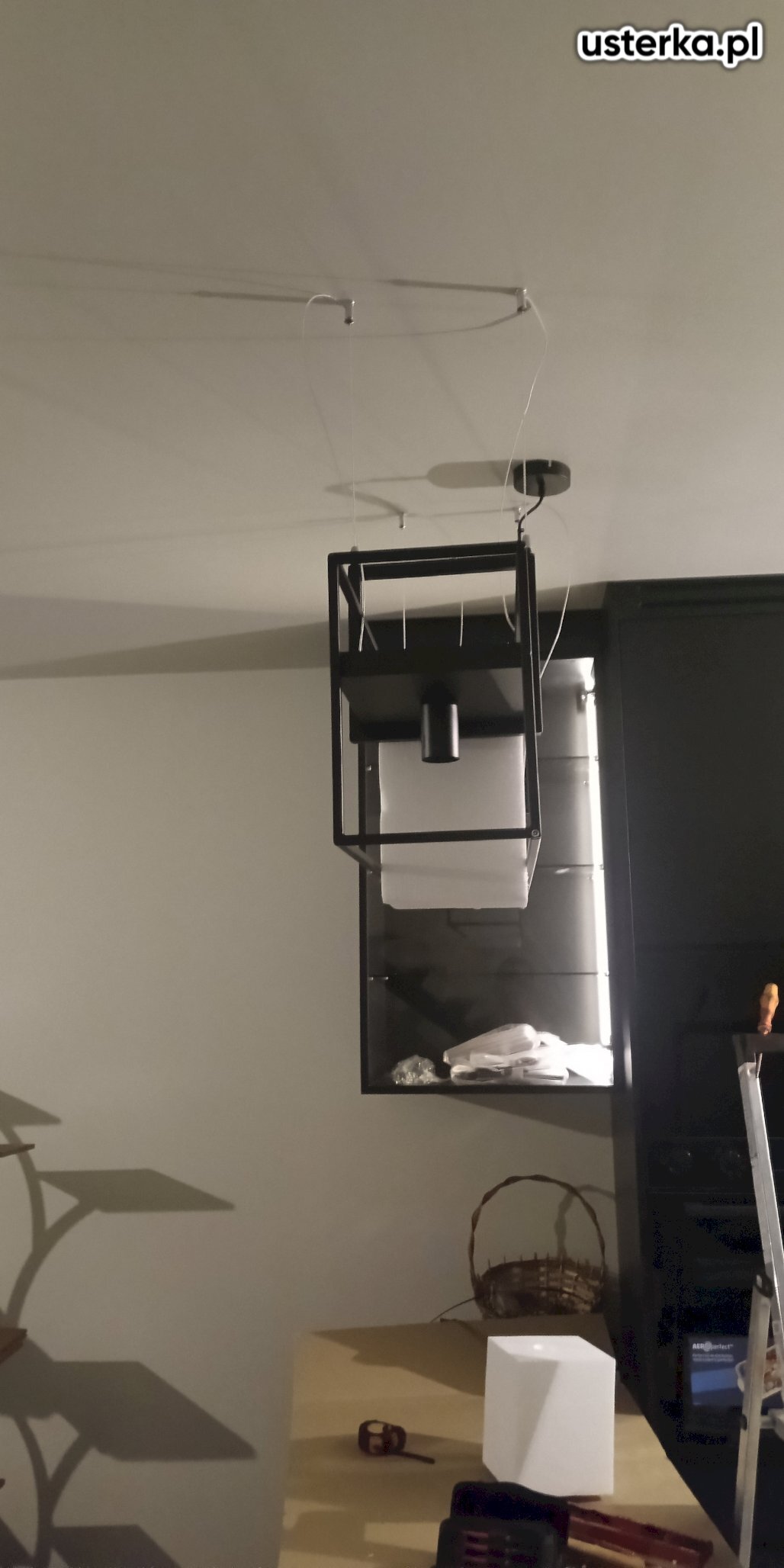 Demontaż starego żyrandola i montaż nowego.