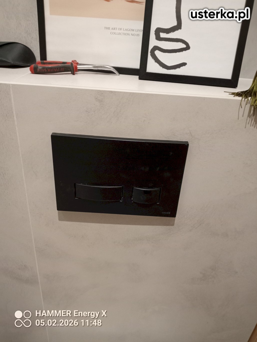 Zgłoszenie dotyczyło problemu z brakiem odbicia przycisku w spłuczce podtynkowej GROHE. Podczas oględzin stwierdzono obecność osadów kamienia i zanieczyszczeń w zaworze doprowadzającym wodę. W ramach naprawy przeprowadzono demontaż, czyszczenie oraz ponowny montaż zaworu. Po wykonaniu prac mechanizm działa prawidłowo, a przycisk odbija bez zakłóceń.