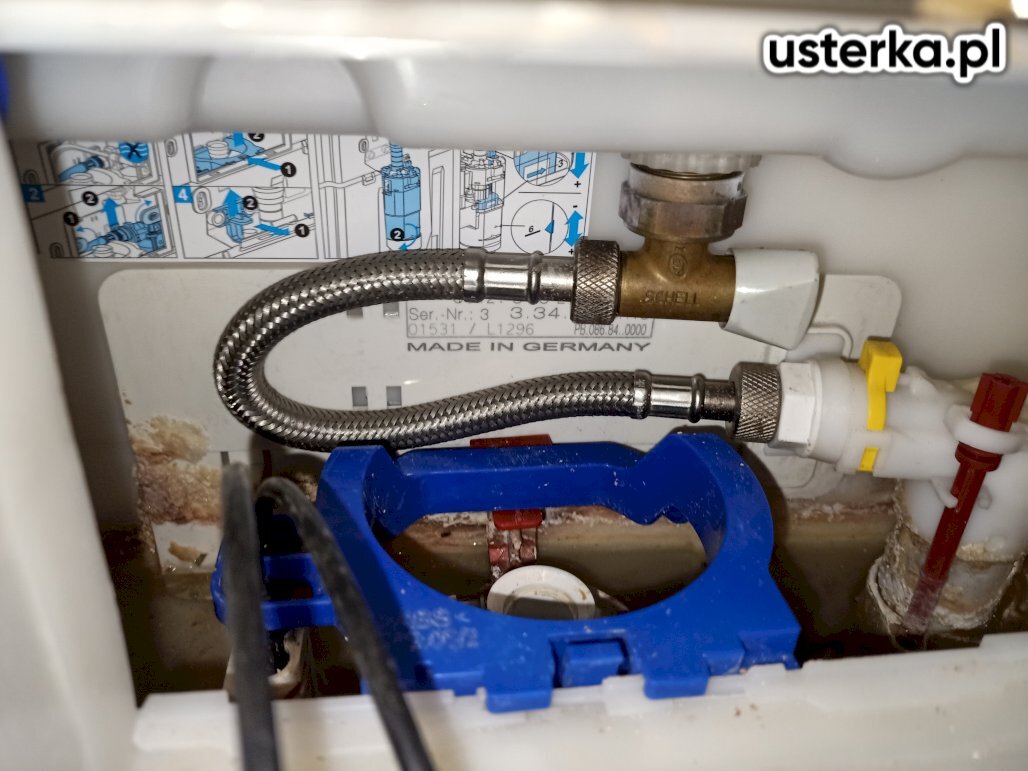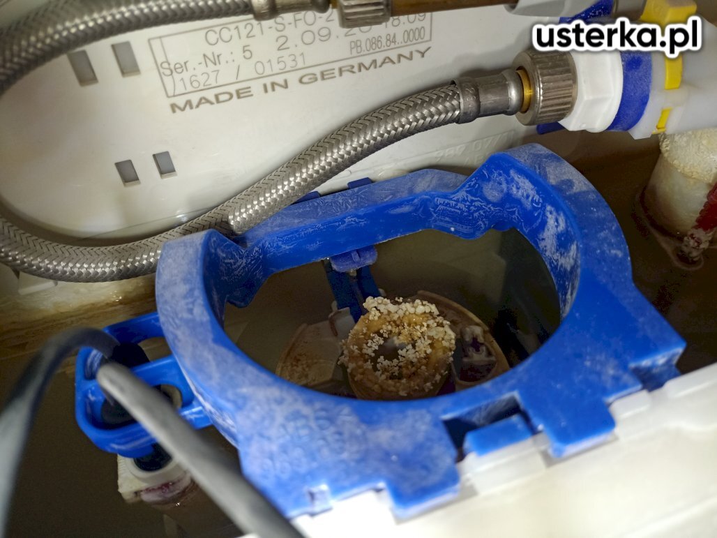 Po oględzinach stwierdziłem uszkodzenie zaworu napełniającego. Wyczyściłem zbiornik oraz zawór spłukujący.