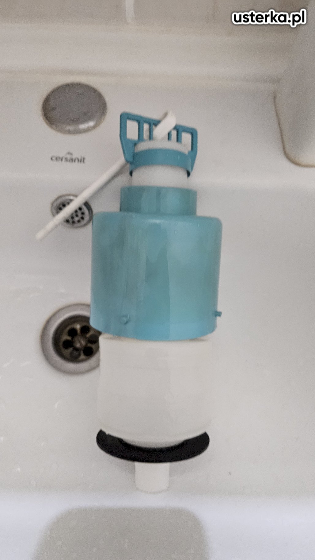 Przyczyną usterki było przechylenie zaworu napełniającego, przez co pływak zahaczał o ściankę zbiornika i blokował napełnianie wodą. Po prawidłowym ustawieniu i montażu zaworu spłuczka działa prawidłowo.