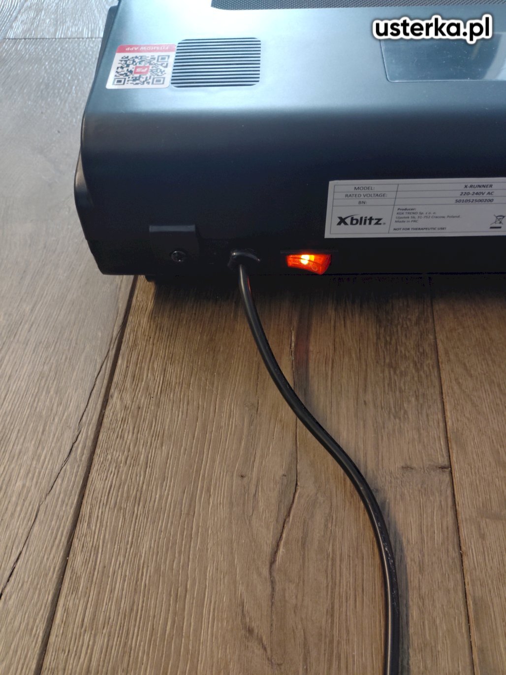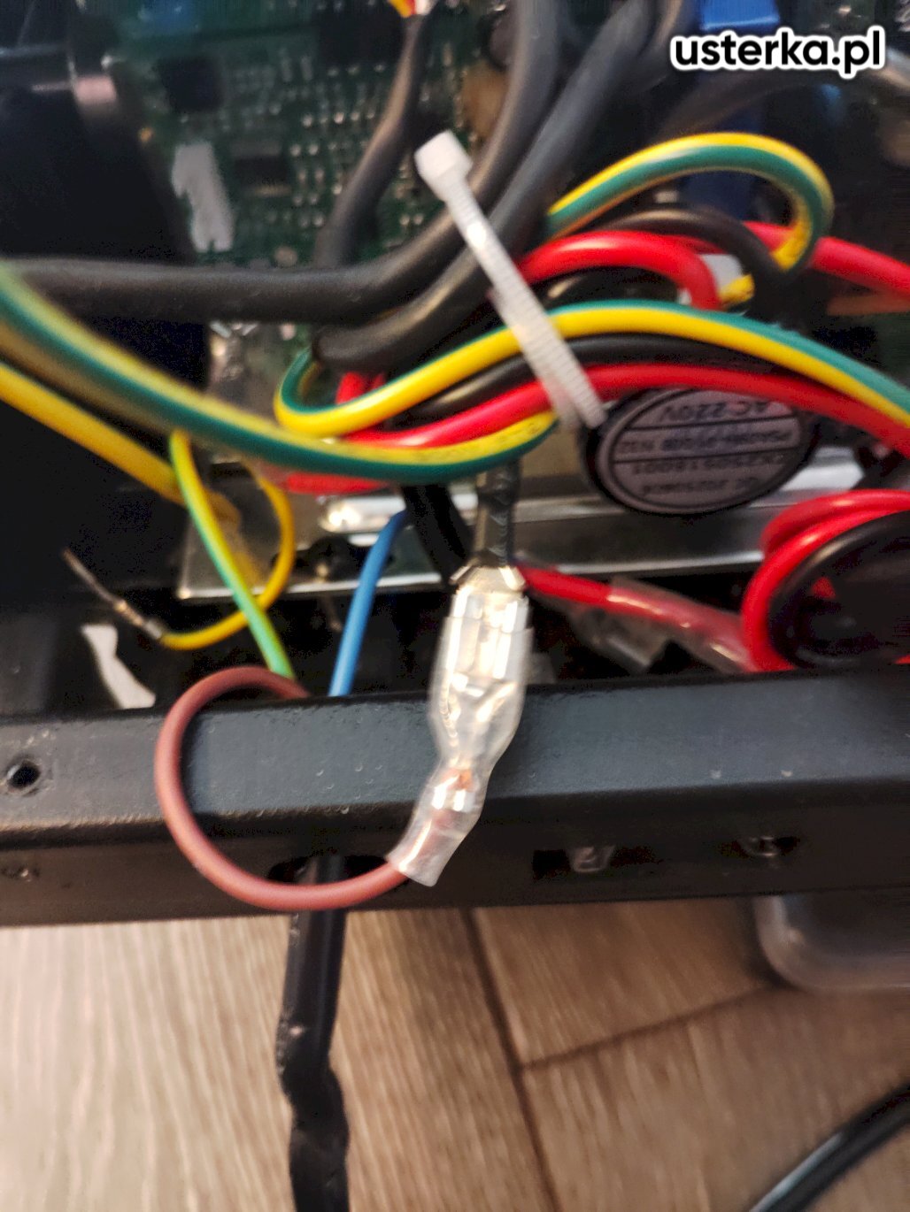 Naprawa zasilania bieżni po uszkodzeniu przewodu.