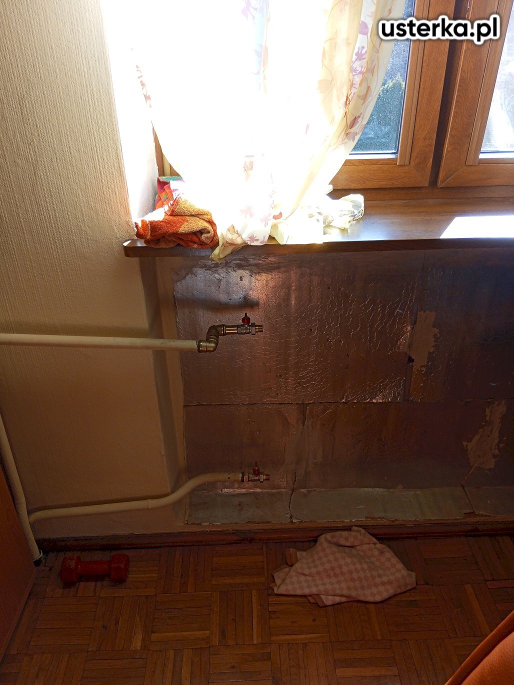 Wykonano naprawę rur przy grzejniku w celu wyeliminowania stukania i poprawy działania instalacji.