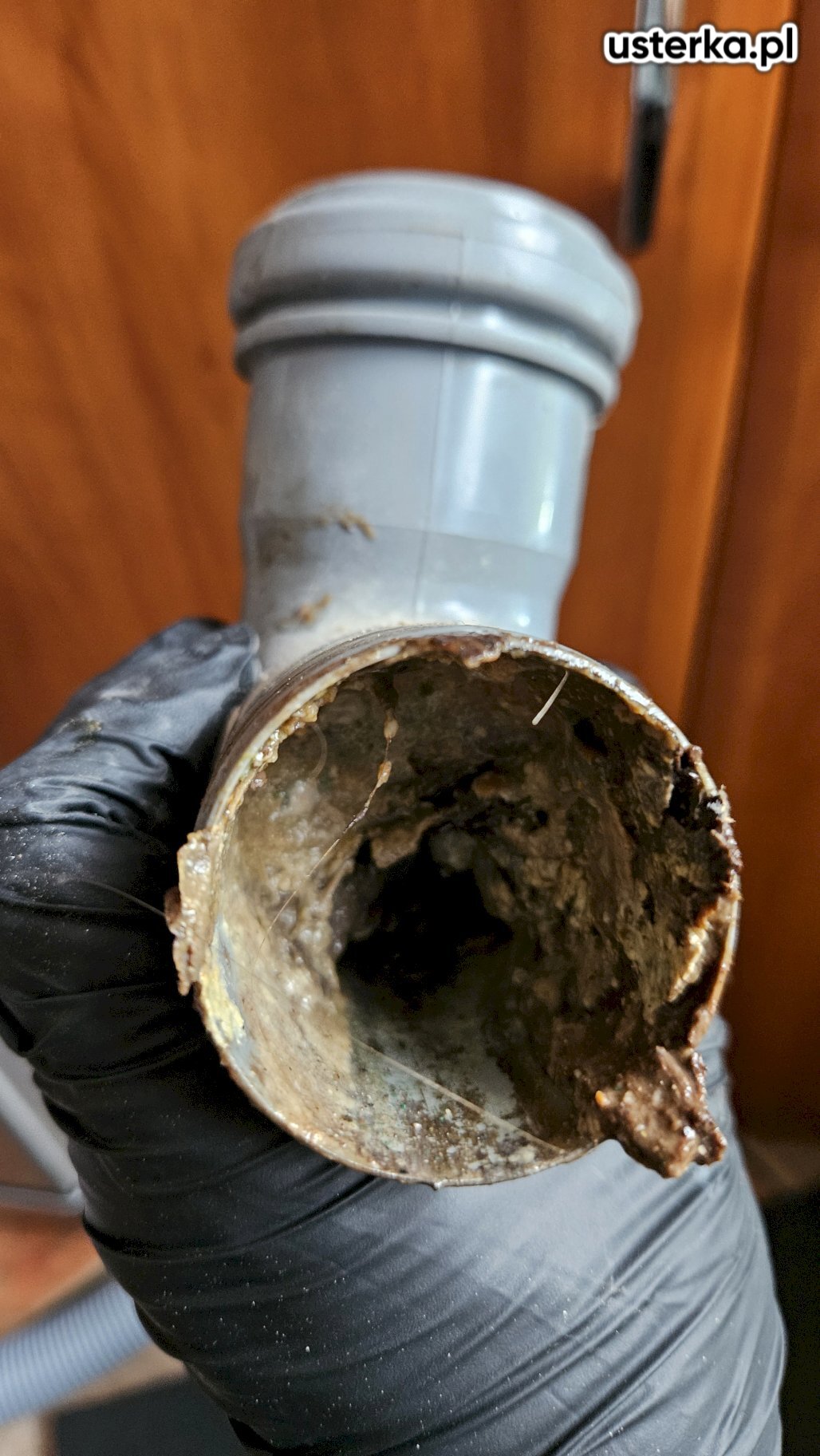 Usunięto niedrożność oraz wymieniono syfon w kuchni, dostosowując instalację do nietypowego kolanka.
