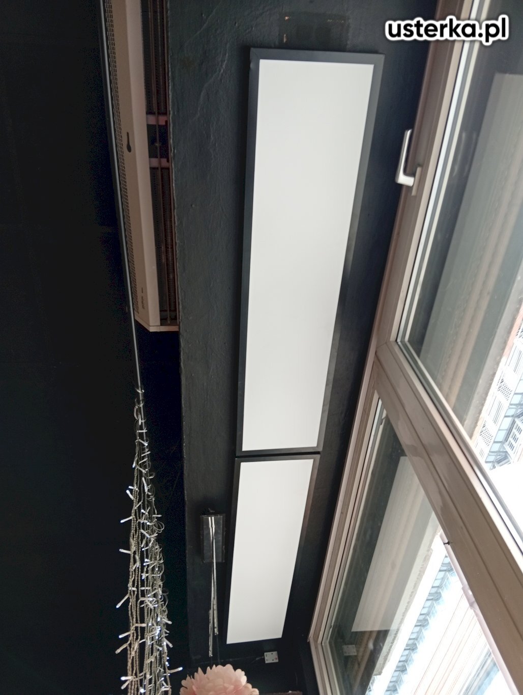 Wymiana dwóch żarówek, ponowne zamocowanie karnisza (wiercenie i montaż) oraz montaż osłony balkonowej.