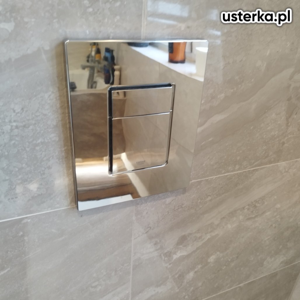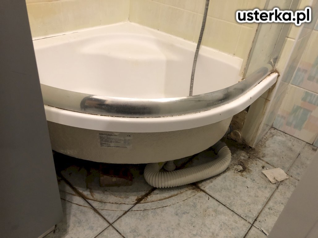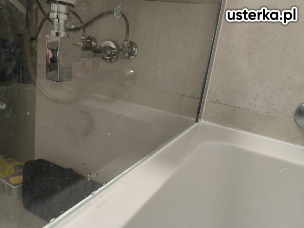 Zamontowano karnisz do zasłonki prysznicowej, wymieniono zawiasy oraz dokręcono deszczownicę.