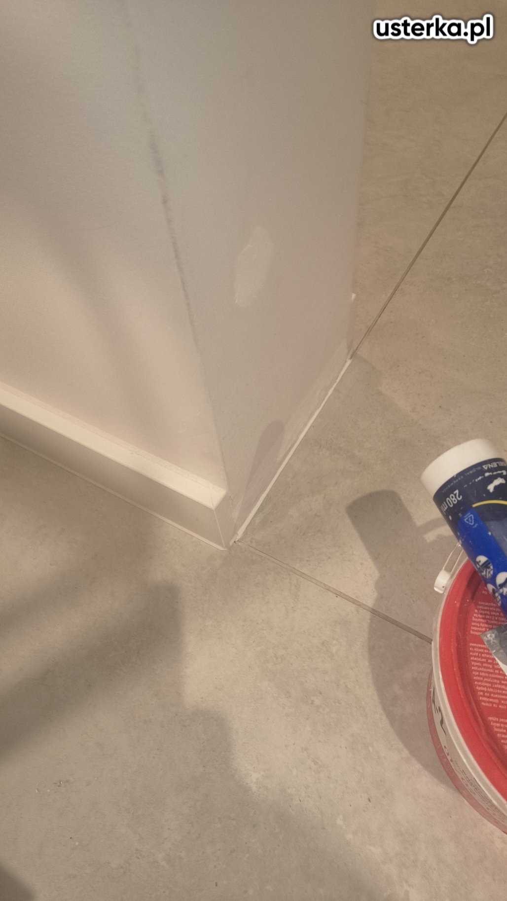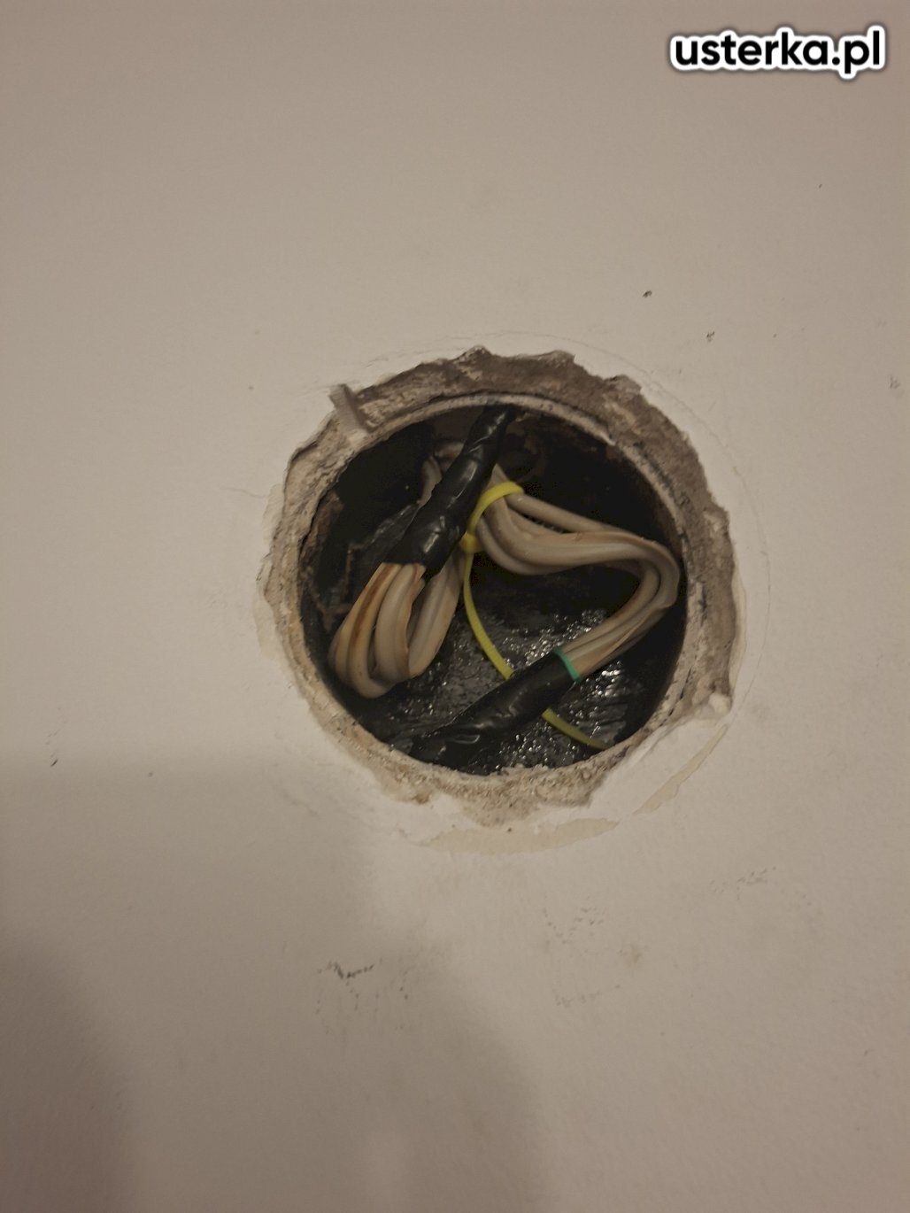 Wykonałem montaż lampy sufitowej, uchwytu na papier toaletowy oraz naprawę ubytku przy listwie przypodłogowej.