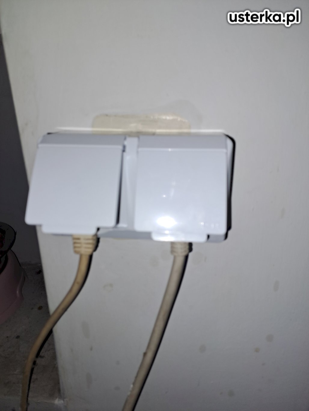 Wykonano naprawę instalacji elektrycznej zasilającej zewnętrzne gniazda i roletę. Wymieniono gniazda oraz wyłącznik oświetlenia na modele IP67 dostarczone przez klienta.