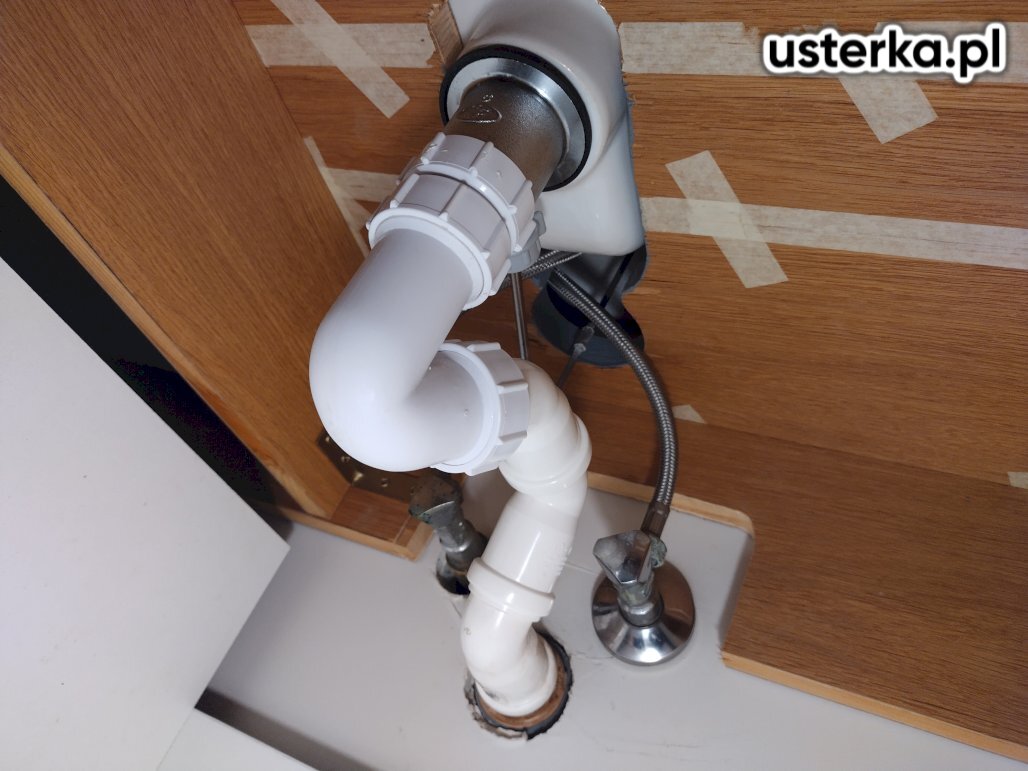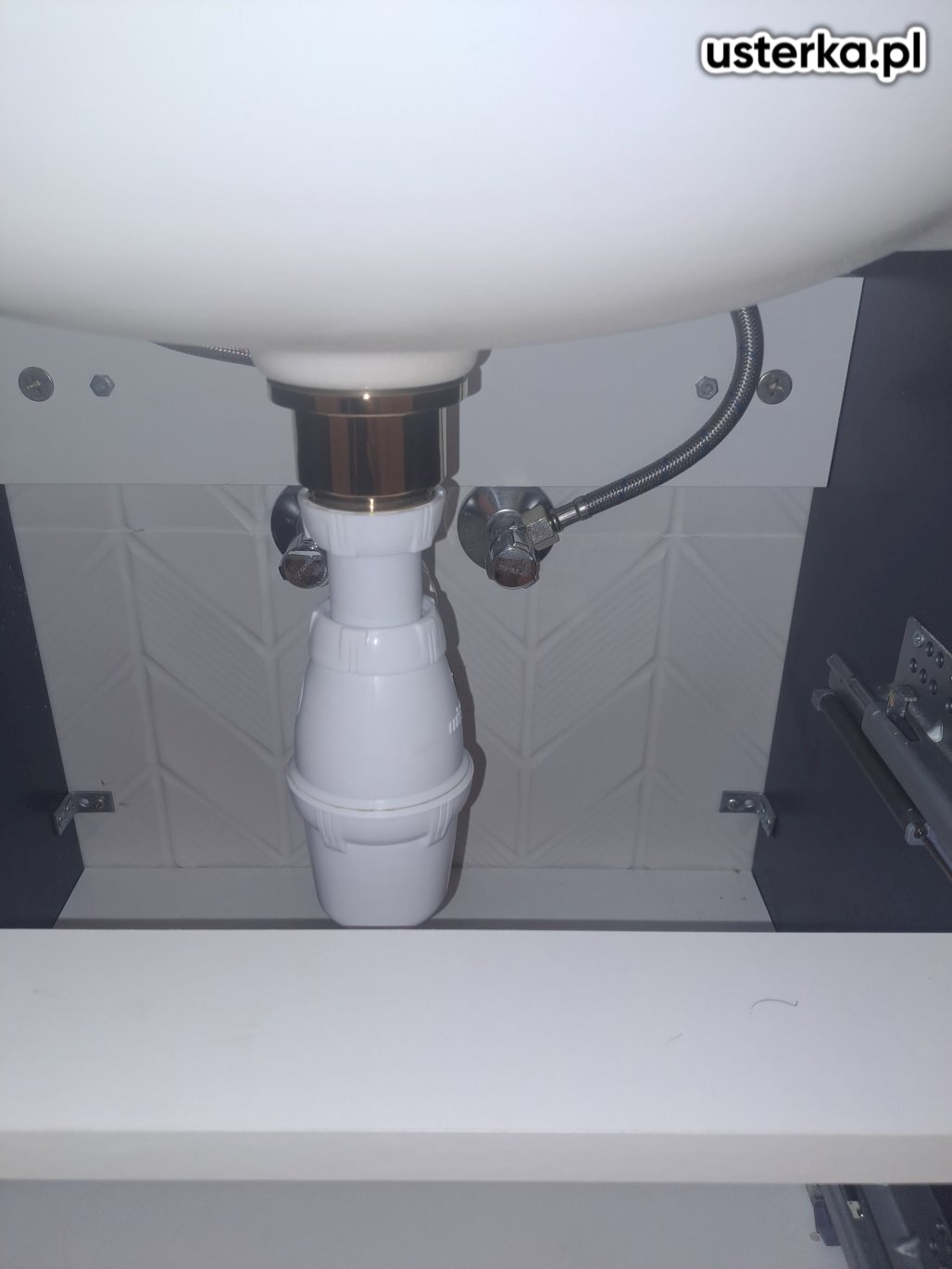 Usunięto przeciek pod umywalką oraz przy okazji wyczyszczono syfon. Wszystko działa prawidłowo.