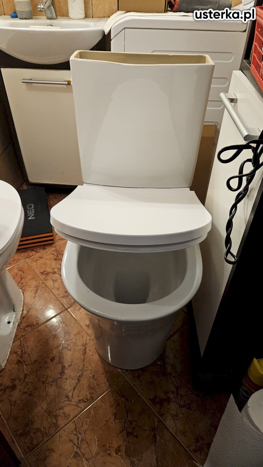 W zakres prac wchodzi demontaż starej muszli klozetowej, montaż nowej wraz z wymianą rury odpływowej oraz wywóz starej toalety.