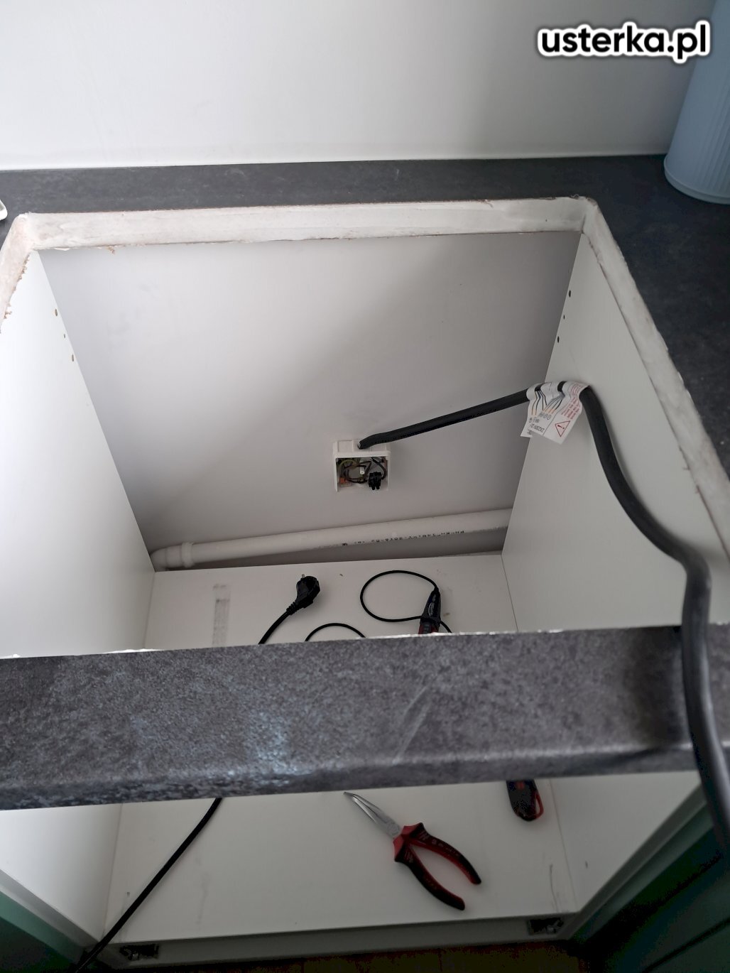 Zamontowano zlew wraz z syfonem i baterią, podłączono zmywarkę do instalacji wodno-kanalizacyjnej oraz podłączono płytę indukcyjną do zasilania.