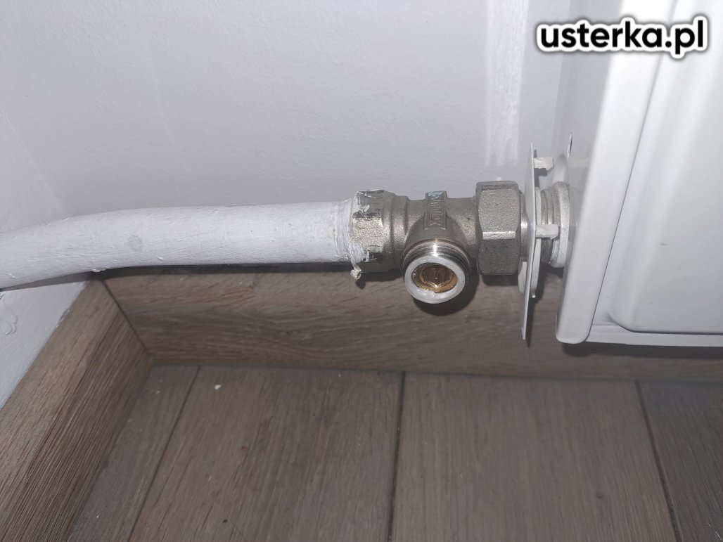 Zawór za pralką był nieszczelny i przeciekał mimo zakręcenia. Wymieniłem go na nowy, problem został usunięty.