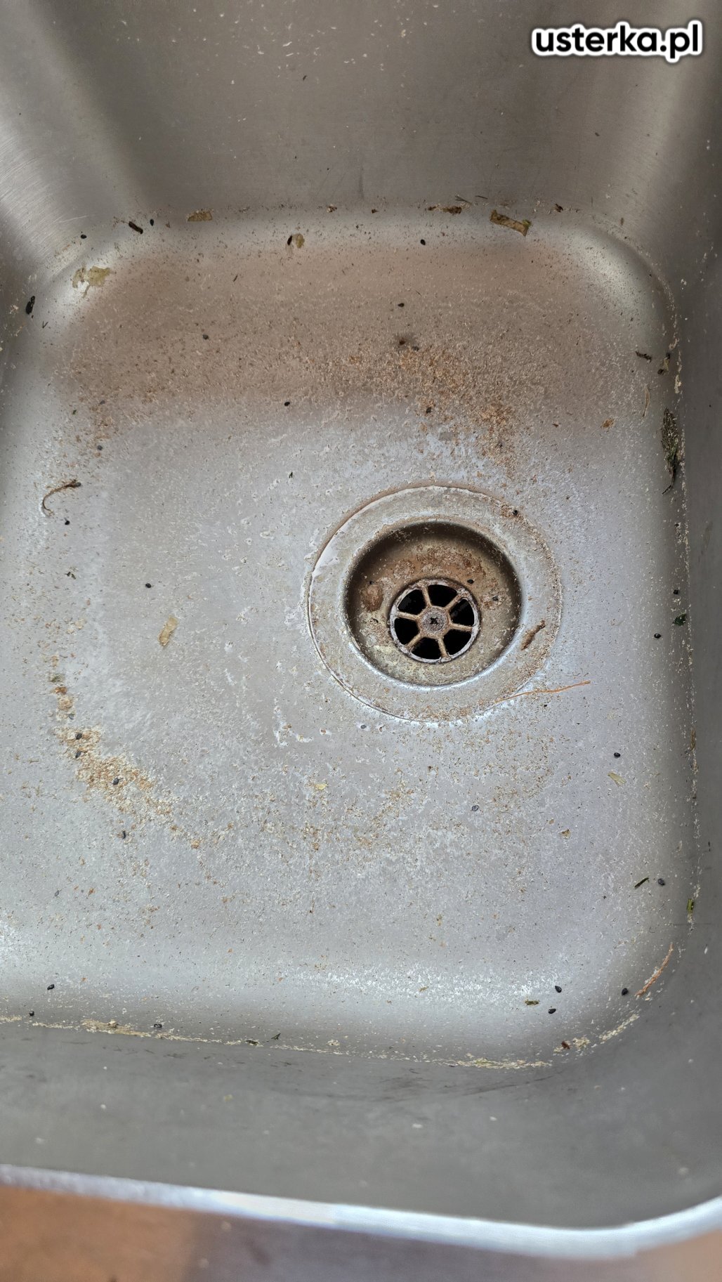Zablokowany syfon w zlewie kuchennym. Syfon został wyczyszczony, a odpływ udrożniony.