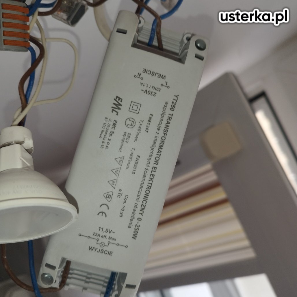 Sprawdzono również problem z włącznikiem światła, który nie zawsze załączał oświetlenie. Ustalono, że przyczyną nie jest włącznik, lecz transformator.