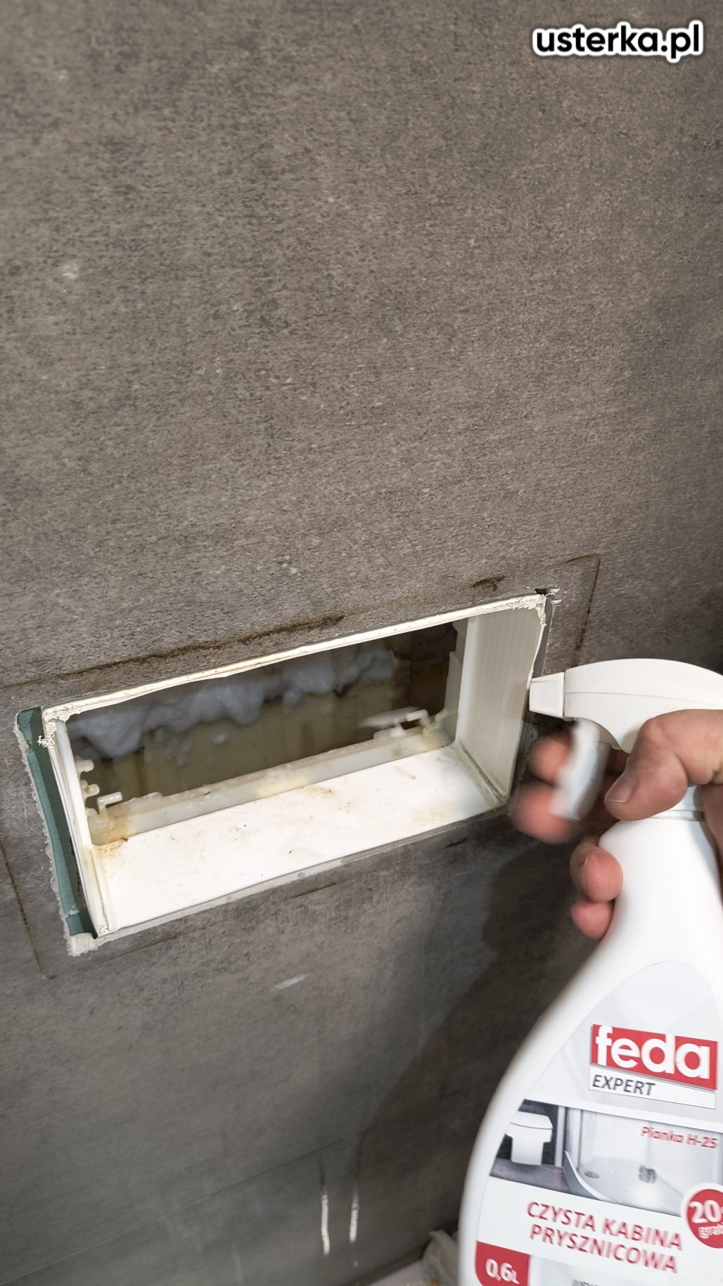 Usunięto kamień blokujący zawór odcinający w spłuczce podtynkowej.