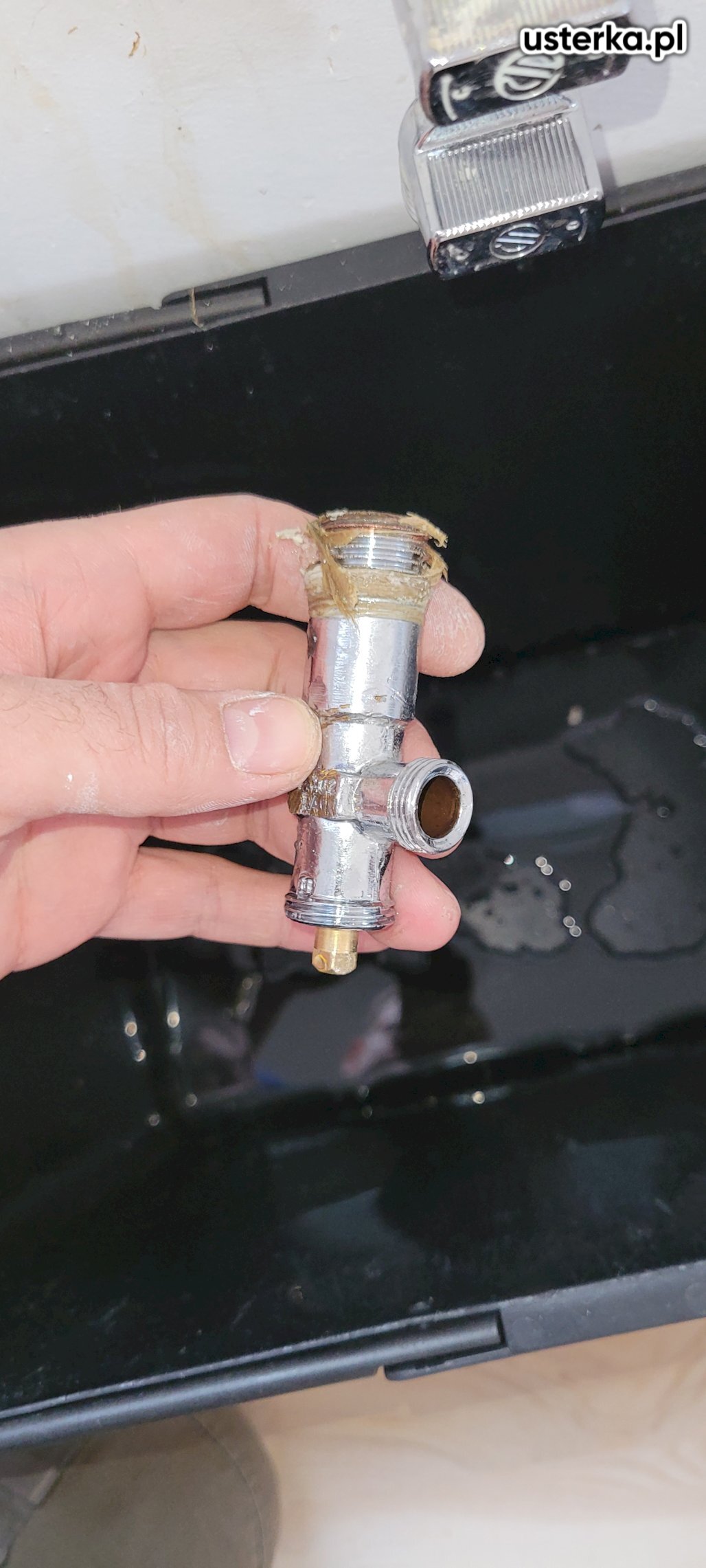 Przyczyną problemu była uszkodzona głowica baterii, co powodowało przeciekanie kranu i kurka.