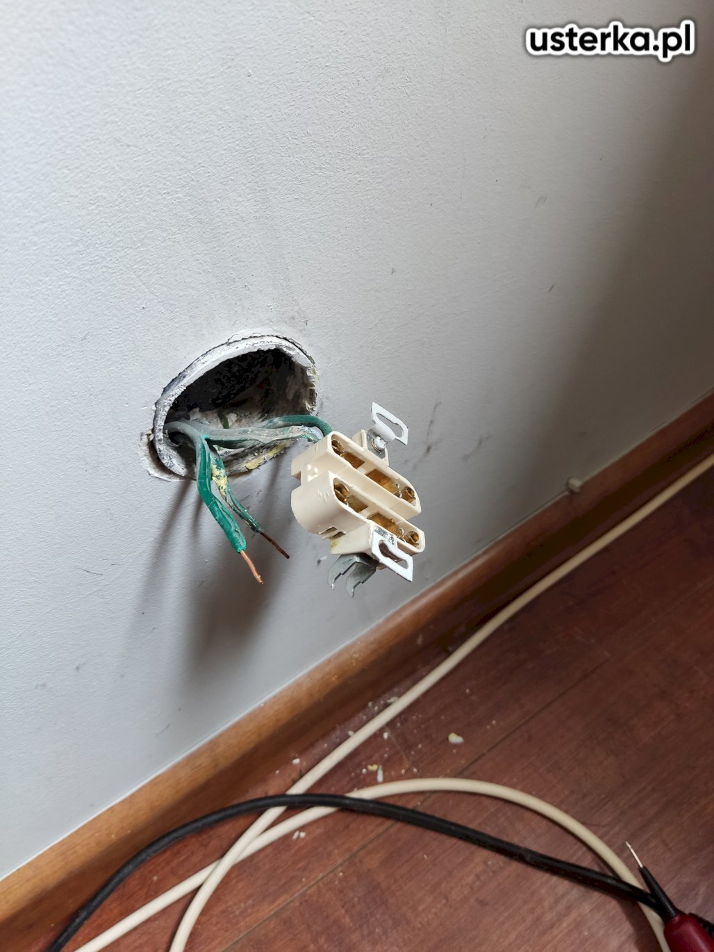 Sprawdzono wskazane gniazda elektryczne oraz przewody i połączenia. Nie stwierdzono uszkodzeń ani nieprawidłowości — gniazda są sprawne.