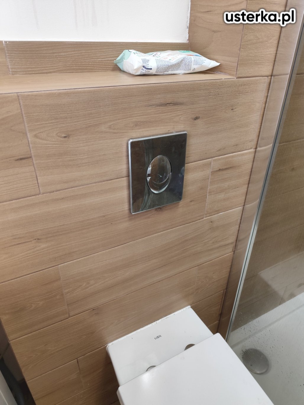 Montaż i poprawa mocowania półki łazienkowej. Wzmocnienie mocowań oraz przywrócenie stabilnego i bezpiecznego osadzenia półki.