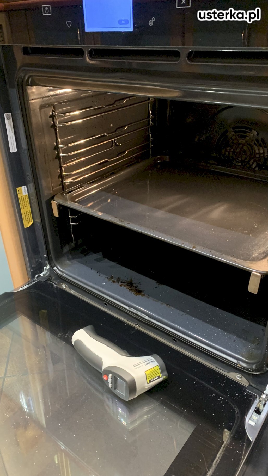 Po przyjeździe na miejsce stwierdziłem brak połączenia przewodu neutralnego oraz iskrzenie we wtyczce. Po poprawnym podłączeniu piekarnik działa prawidłowo. Dodatkowo sprawdziłem grzałki i termostaty – są sprawne.