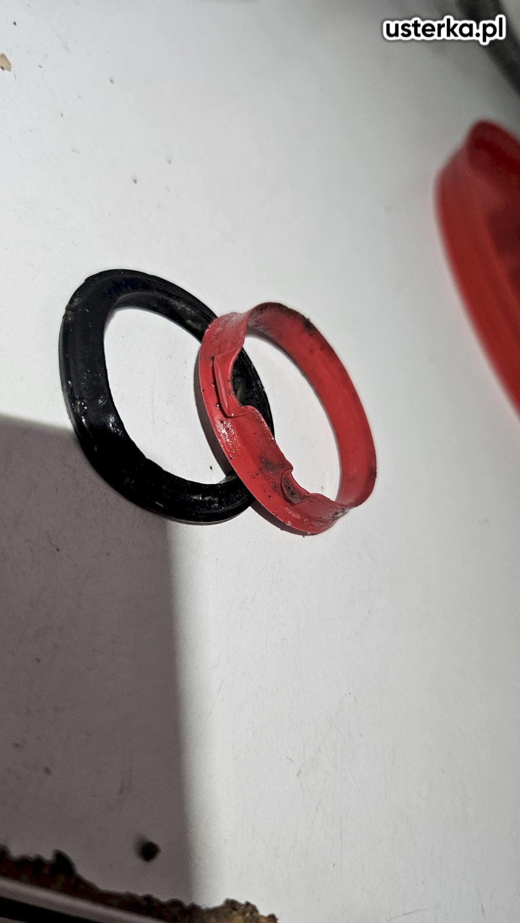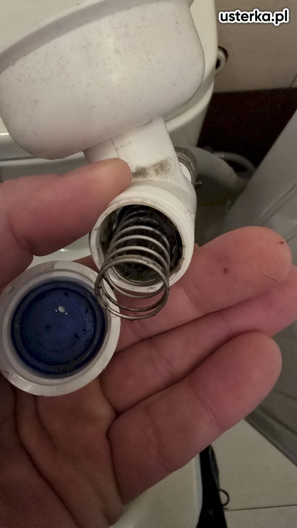 Po przyjeździe stwierdziłem pęknięcia korpusu zbiornika oraz przerdzewiały amortyzator, co powodowało wyciek.