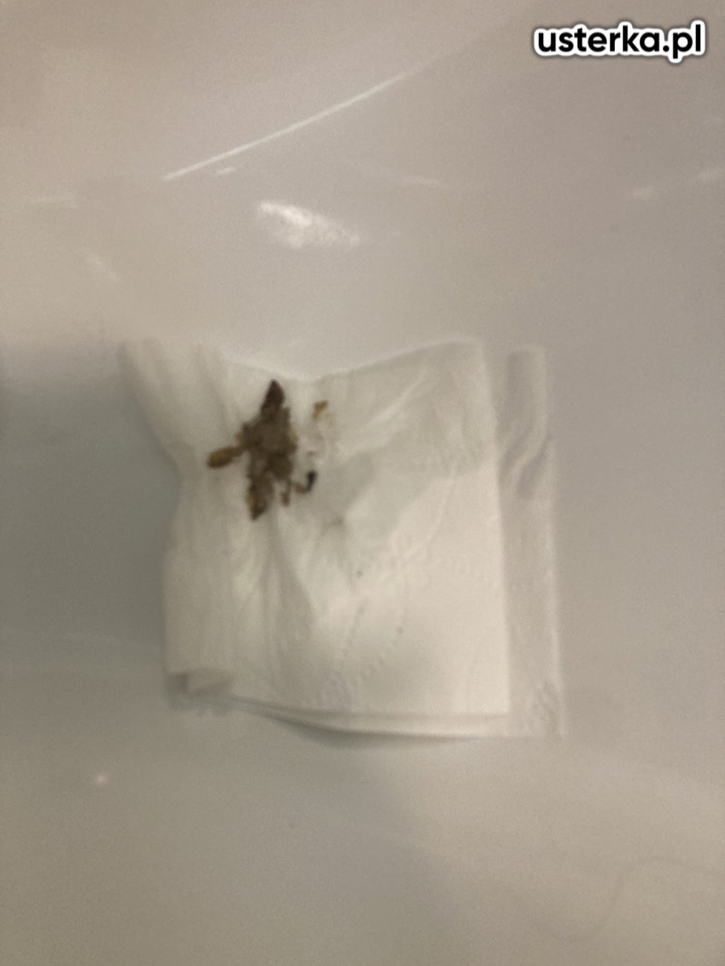Po diagnozie stwierdzono zablokowanie pompy odpływowej przez obcy przedmiot oraz uszkodzenie fartucha, który wymaga wymiany.