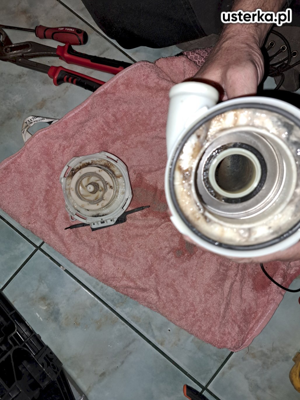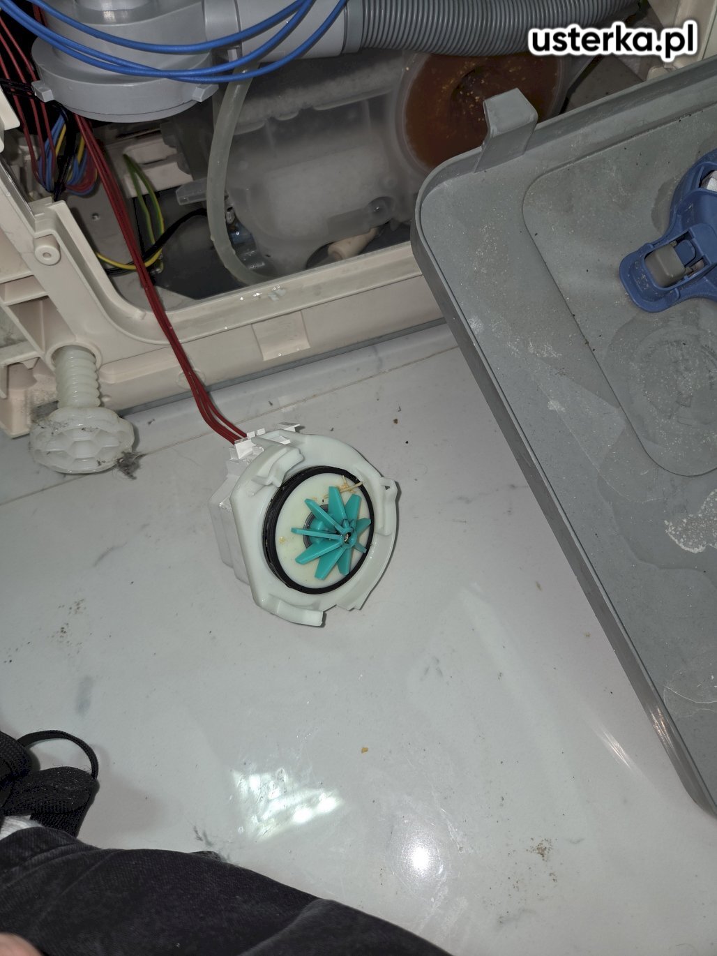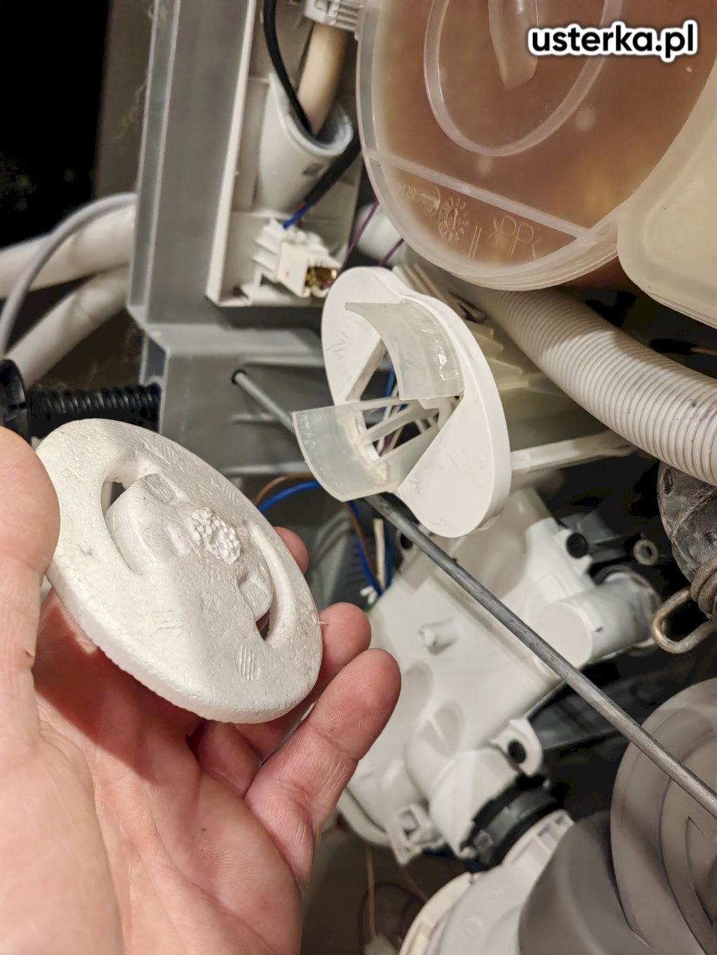 Stwierdzono uszkodzenie pompy myjącej z grzałką.
