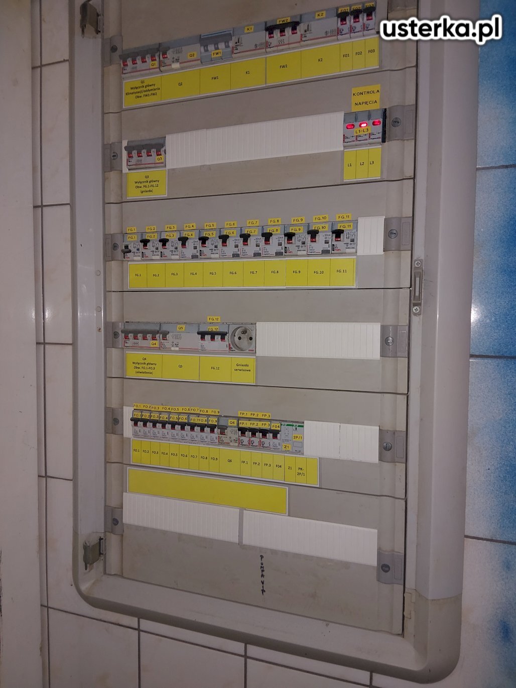 Wymieniłem uszkodzony bezpiecznik różnicowoprądowy na nowy wyłącznik AC 30 mA, 40A. Oświetlenie działa prawidłowo.