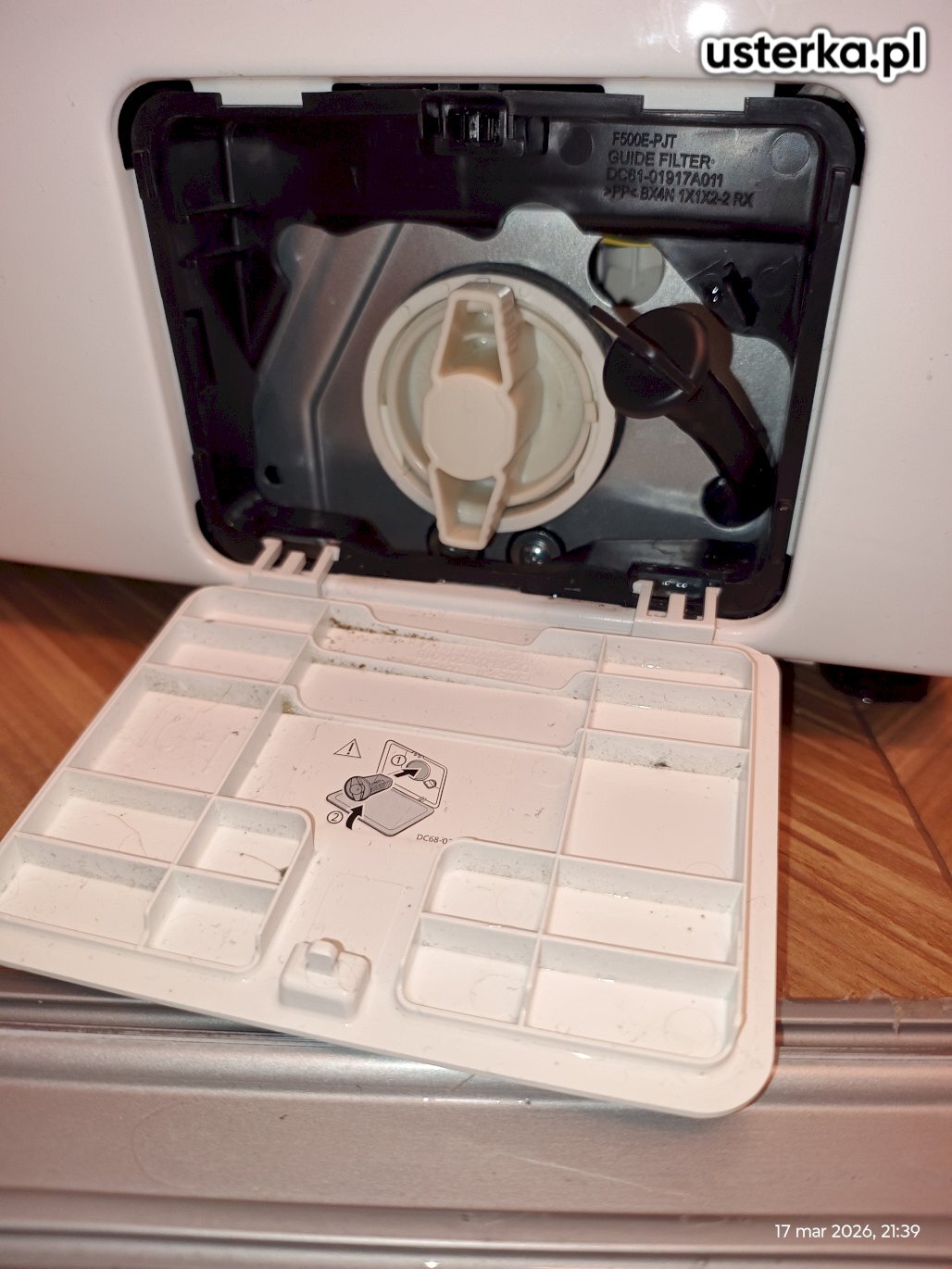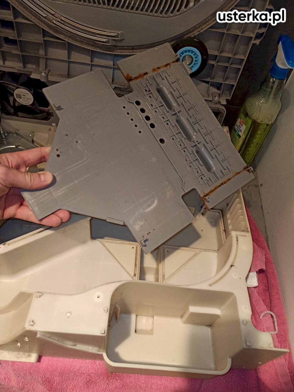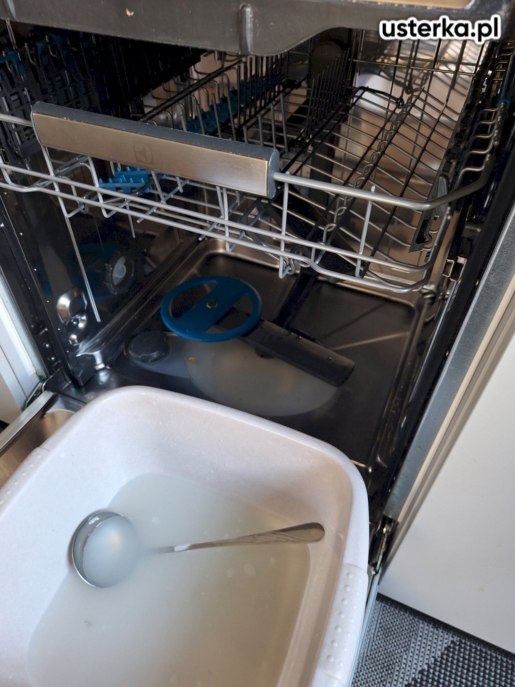 Przyczyną usterki była zablokowana pompa odpływowa, co uniemożliwiało odprowadzenie wody i powodowało pojawienie się błędu.