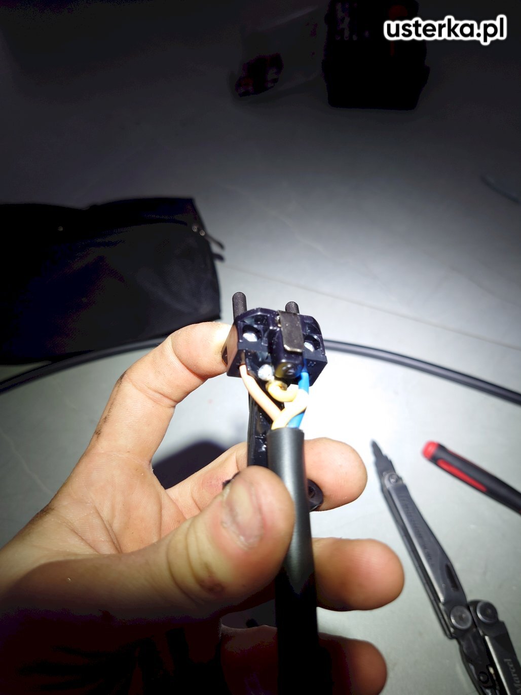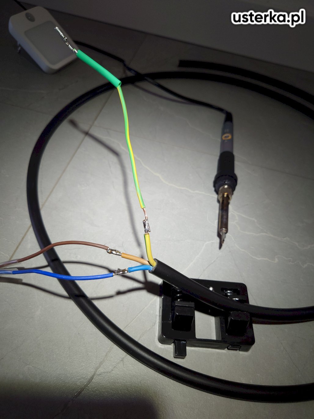 Przewód zasilający pralki został uszkodzony przez gryzonie. Wymieniłem go na nowy, poprawnie podłączając i zaciskając konektory. Pralka działa prawidłowo, zasilanie jest sprawne.