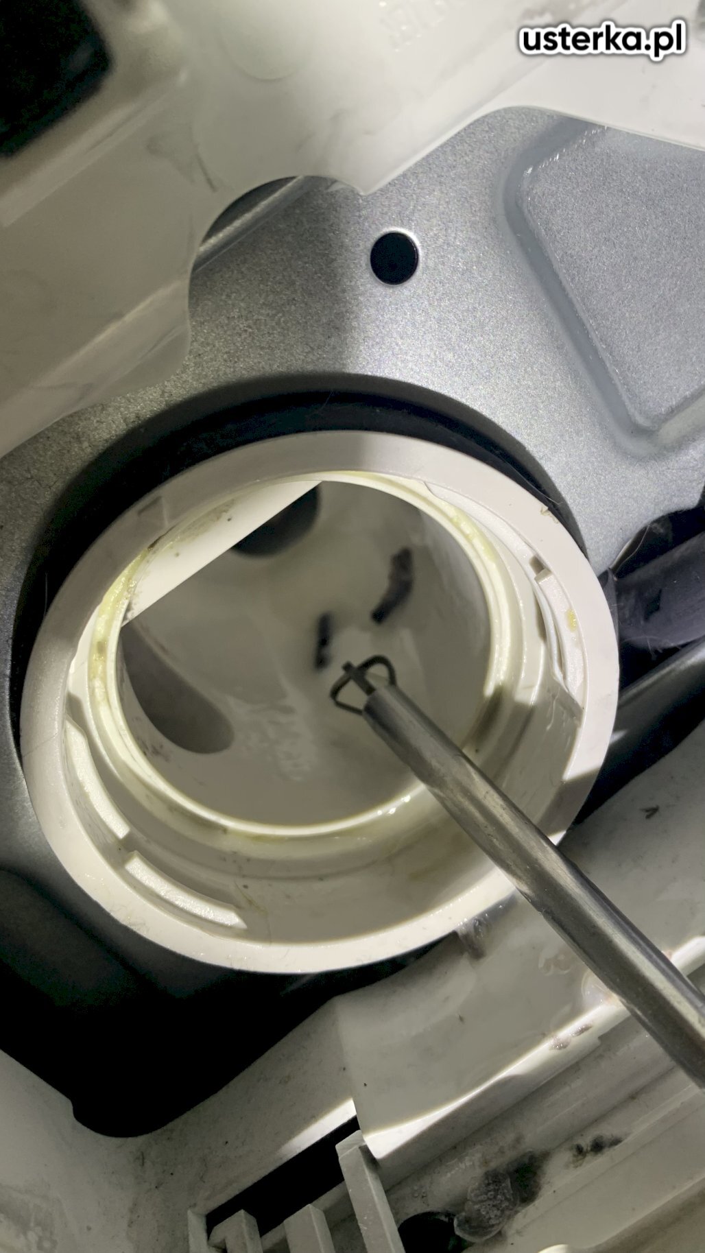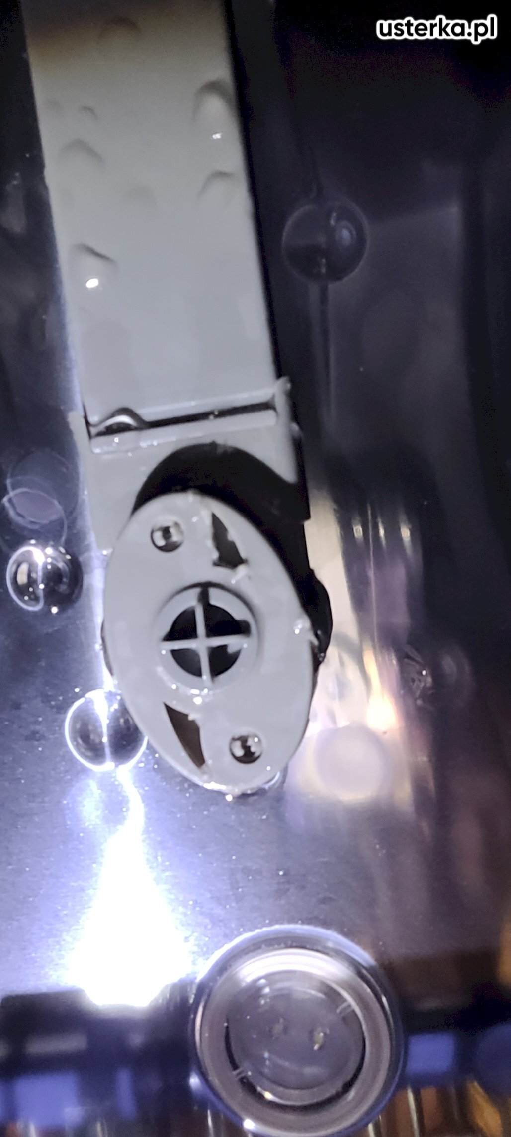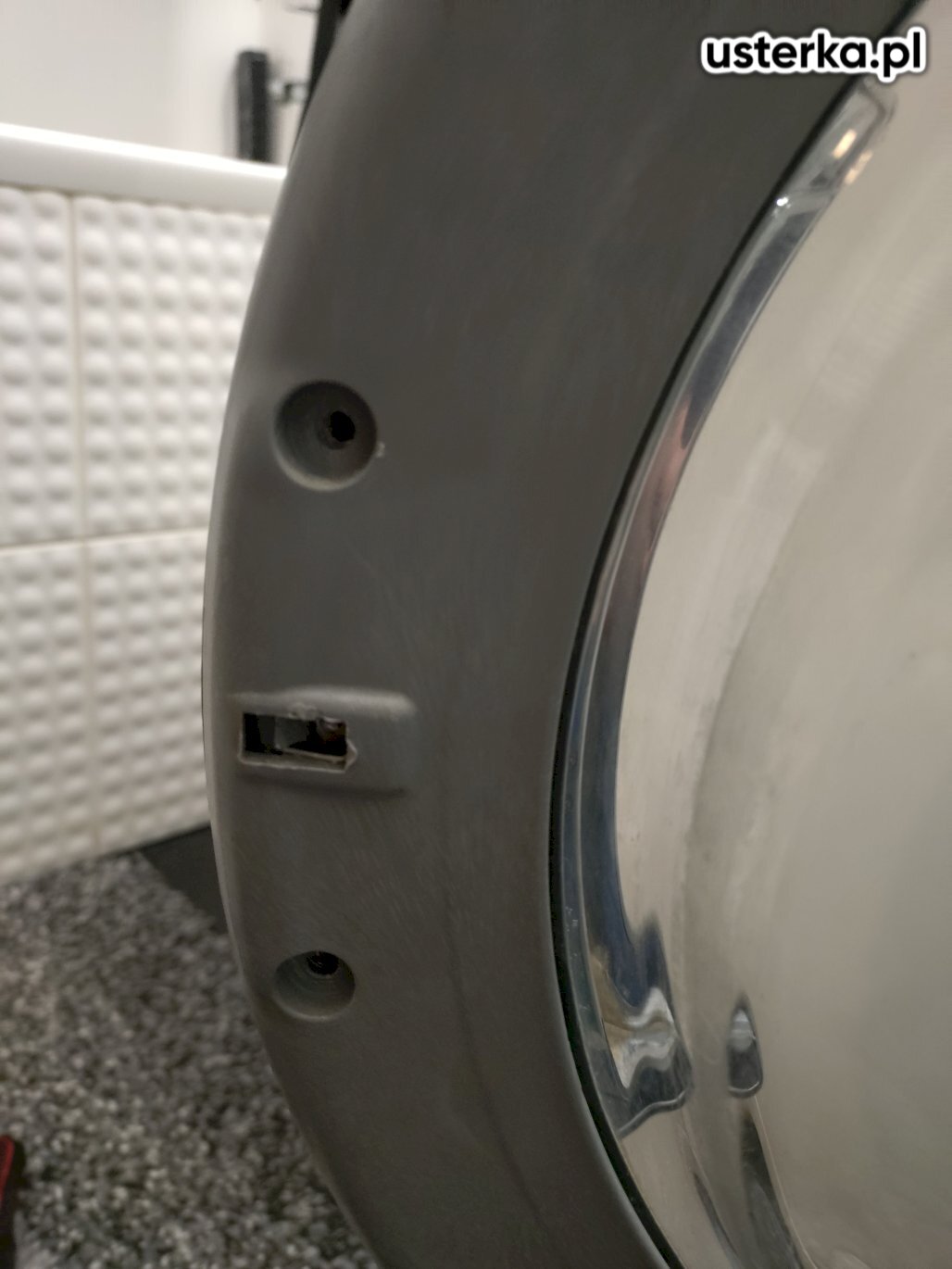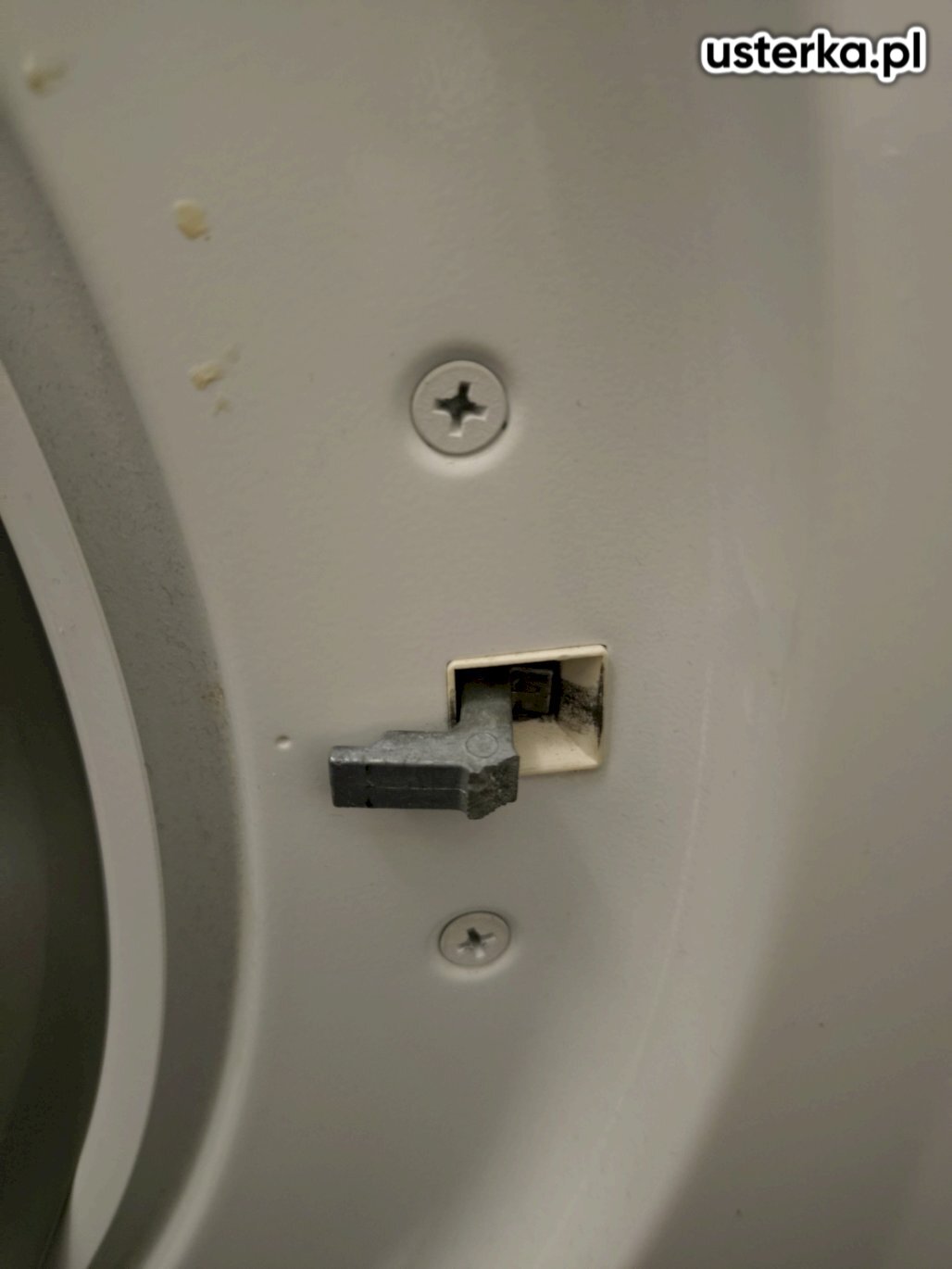 Sprawdziłem pralkę – stwierdziłem wyłamany bolec uchwytu drzwi.
