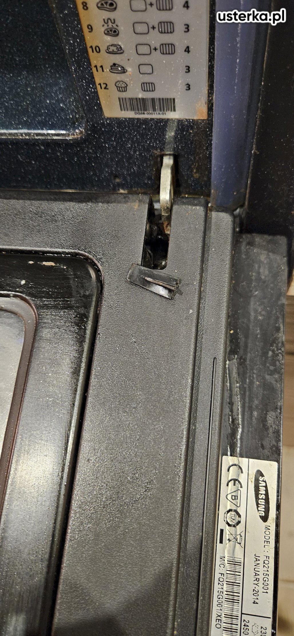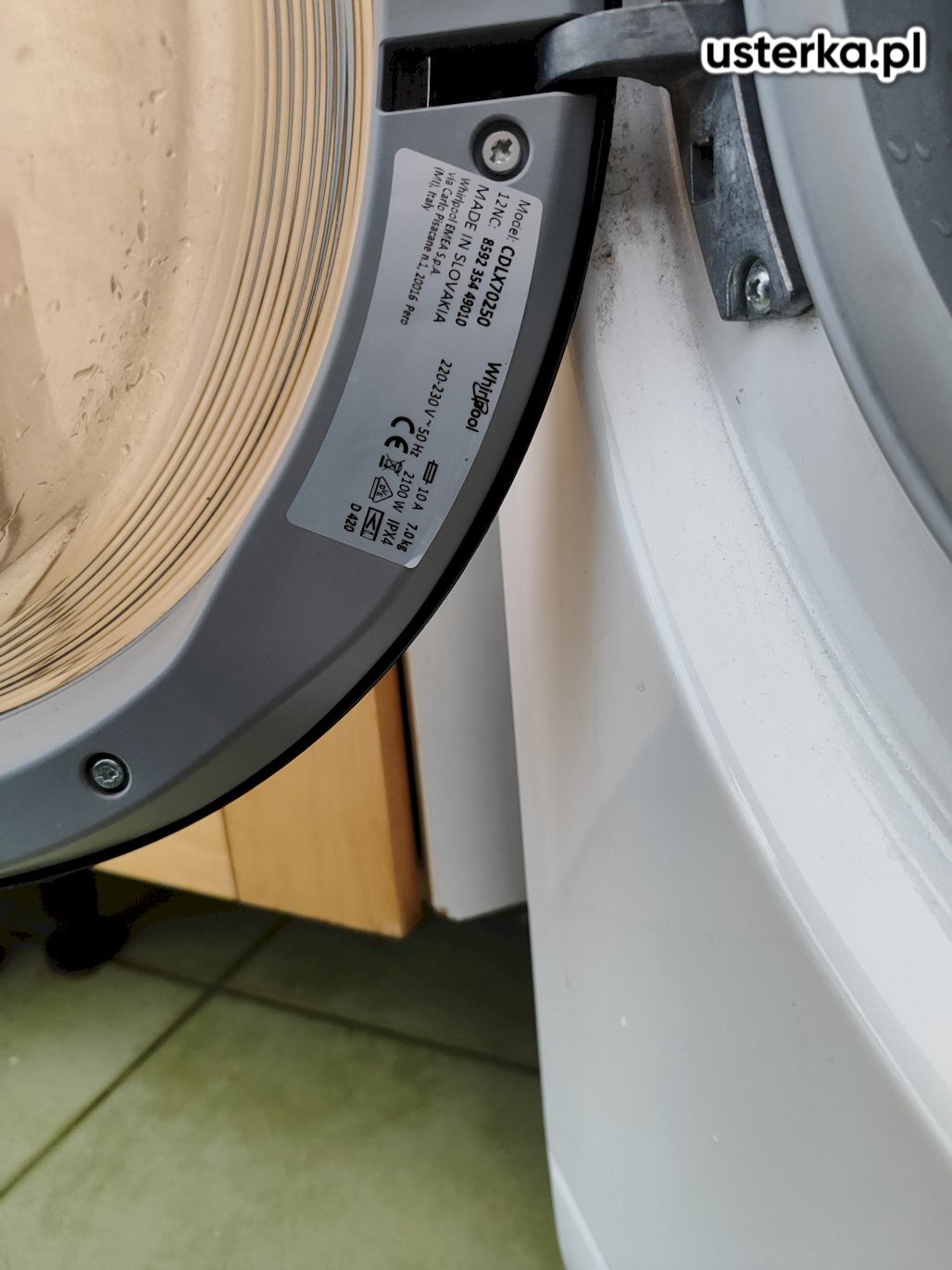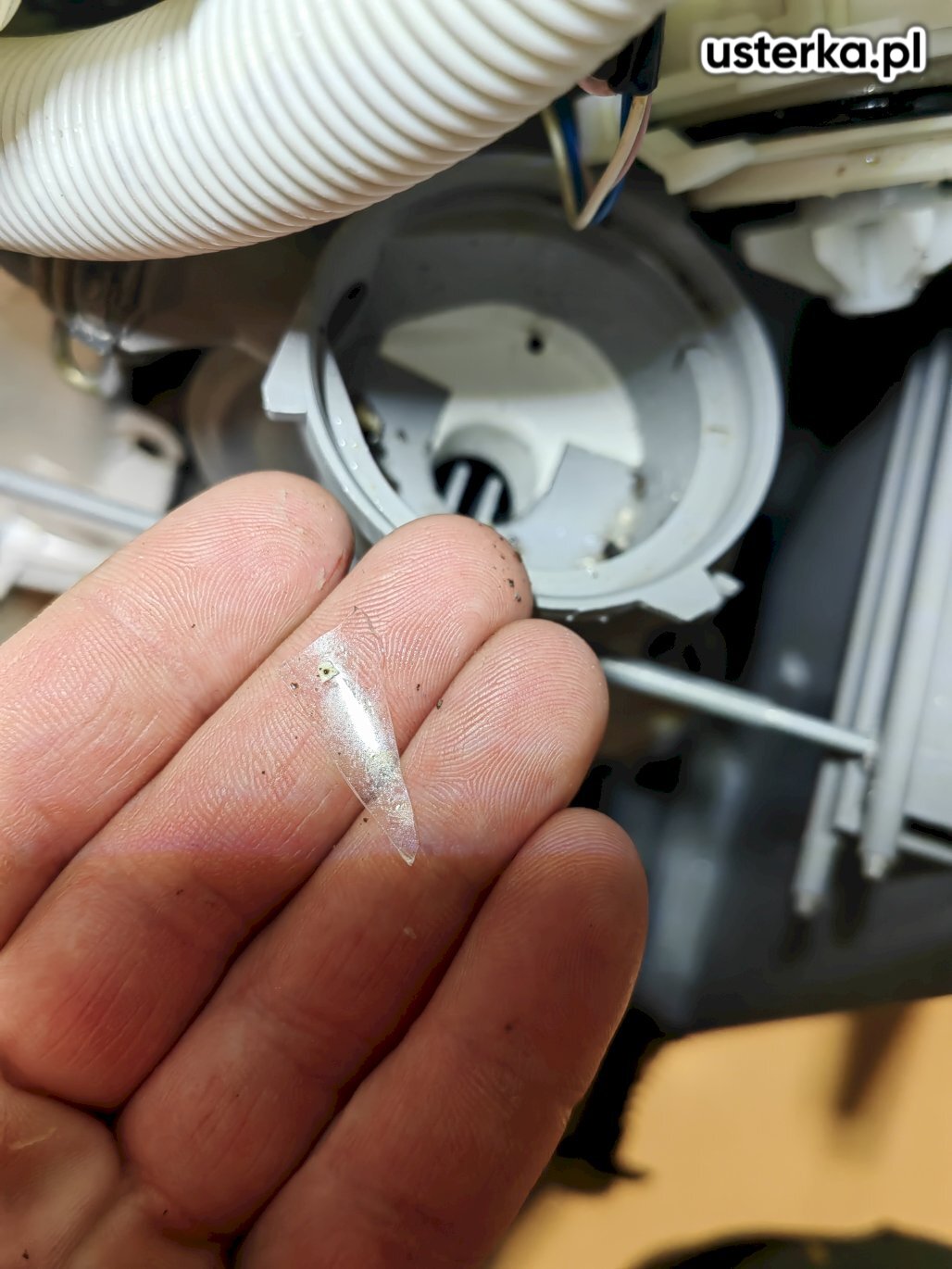 Sprawdziłem pralkę – stwierdziłem wyłamany bolec uchwytu drzwi.