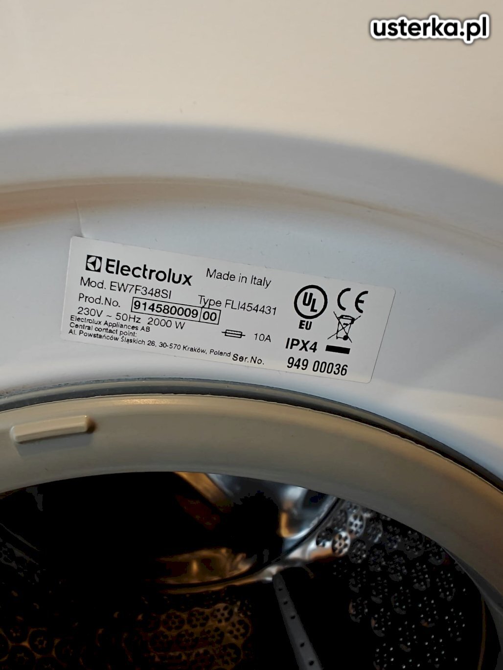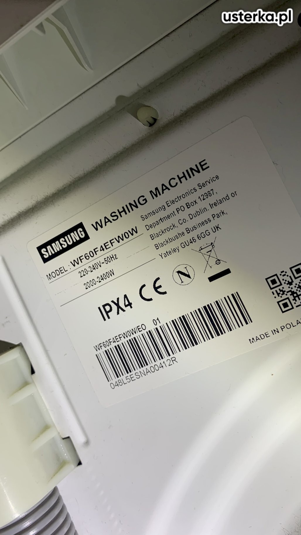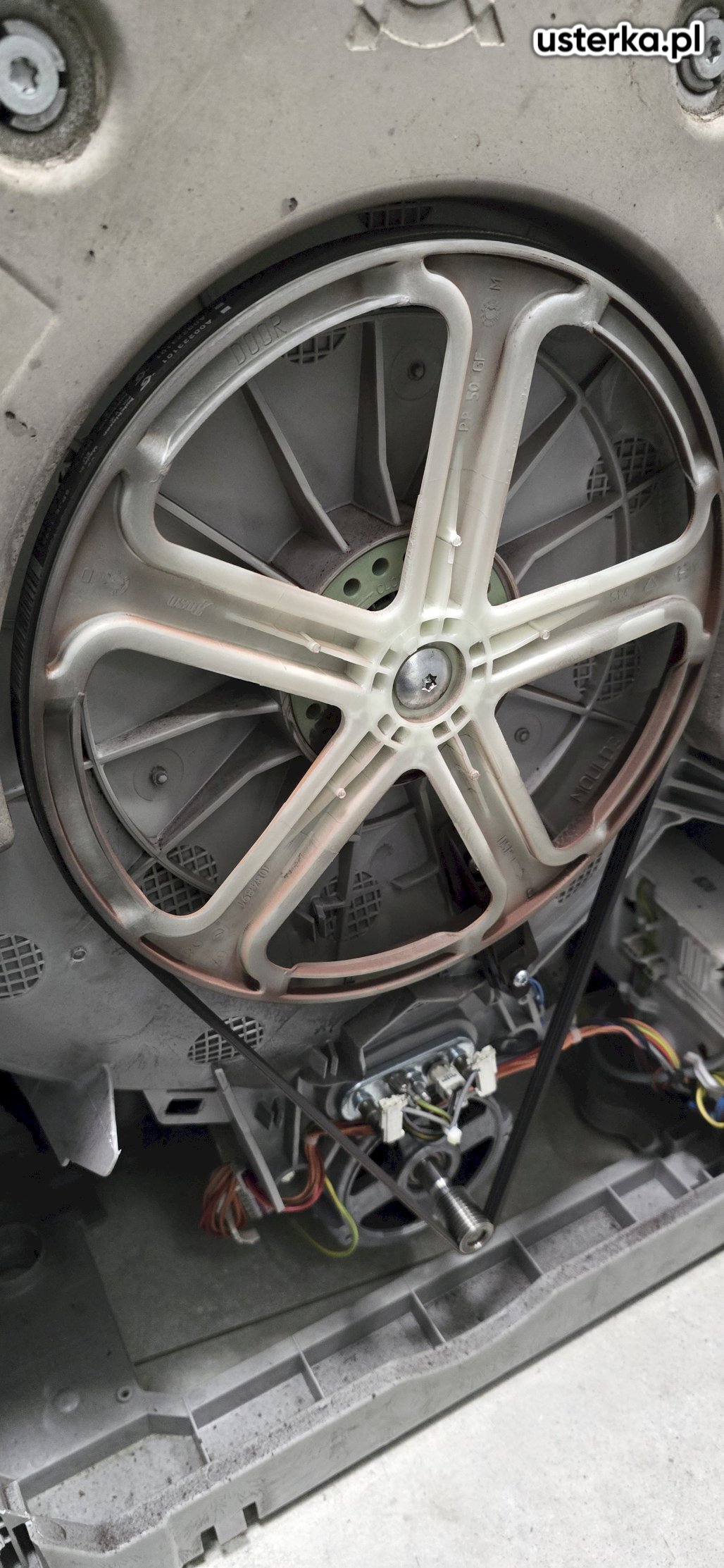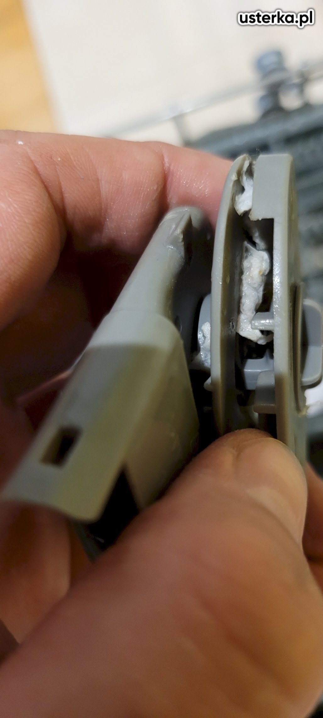 Sprawdziłem pralkę – stwierdziłem wyłamany bolec uchwytu drzwi.
