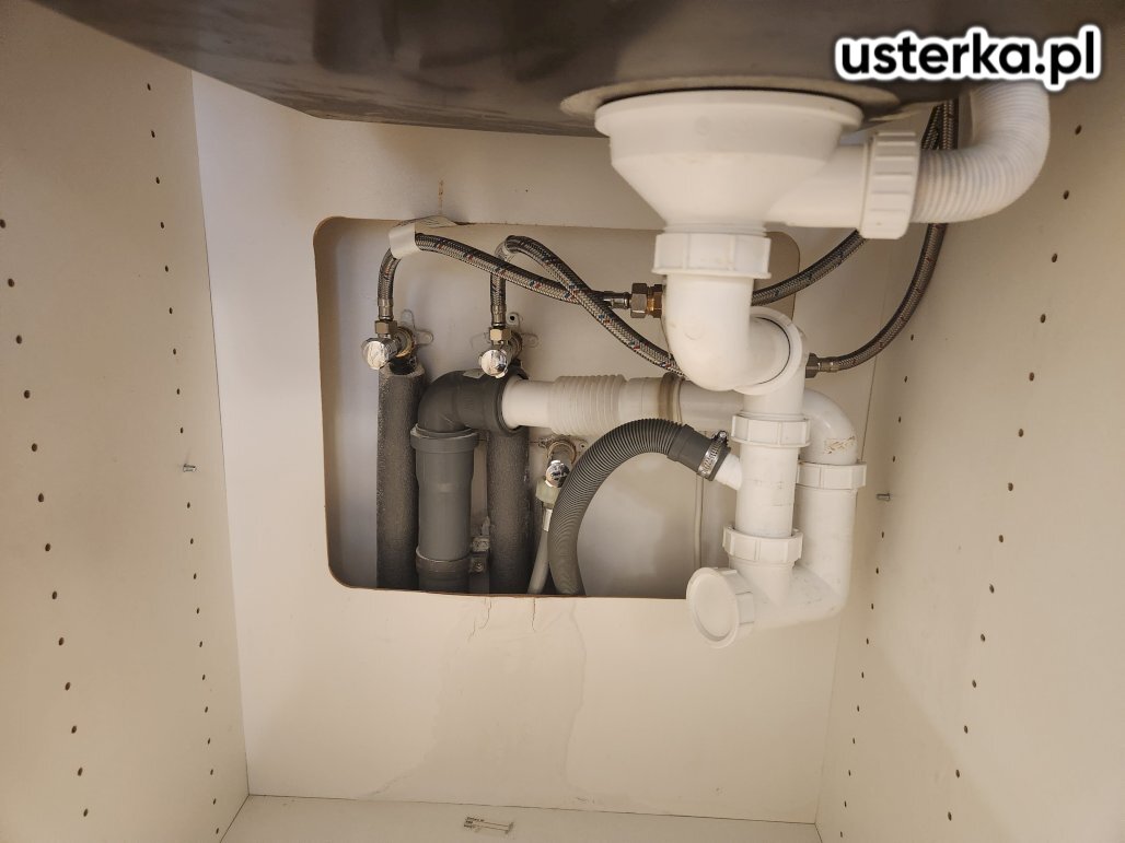 Wymieniłem rury kanalizacyjne pod zlewem, usuwając nieszczelność syfonu.