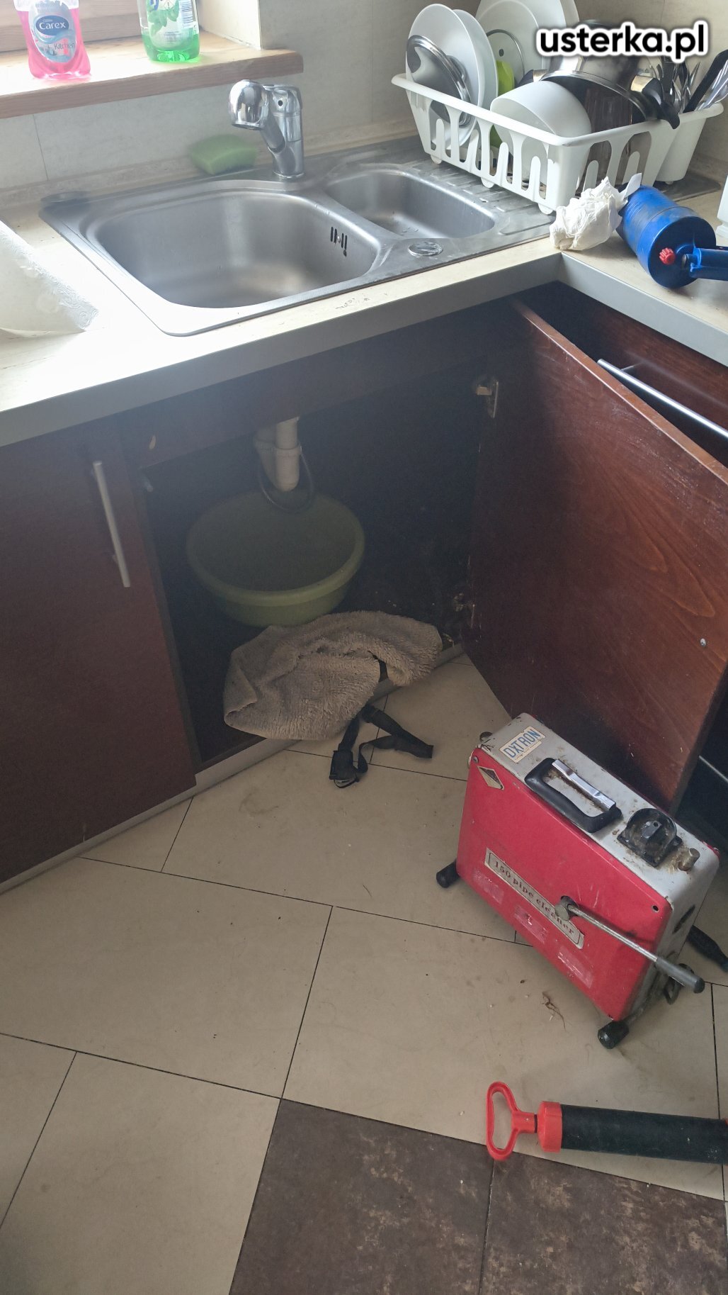 Wykonano udrażnianie odpływu zlewu kuchennego.