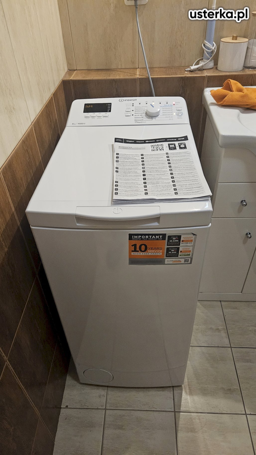 Sprawdzono zawór doprowadzający wodę do pralki – stwierdzono nieszczelność. Pralkę podłączono i przetestowano jej działanie.