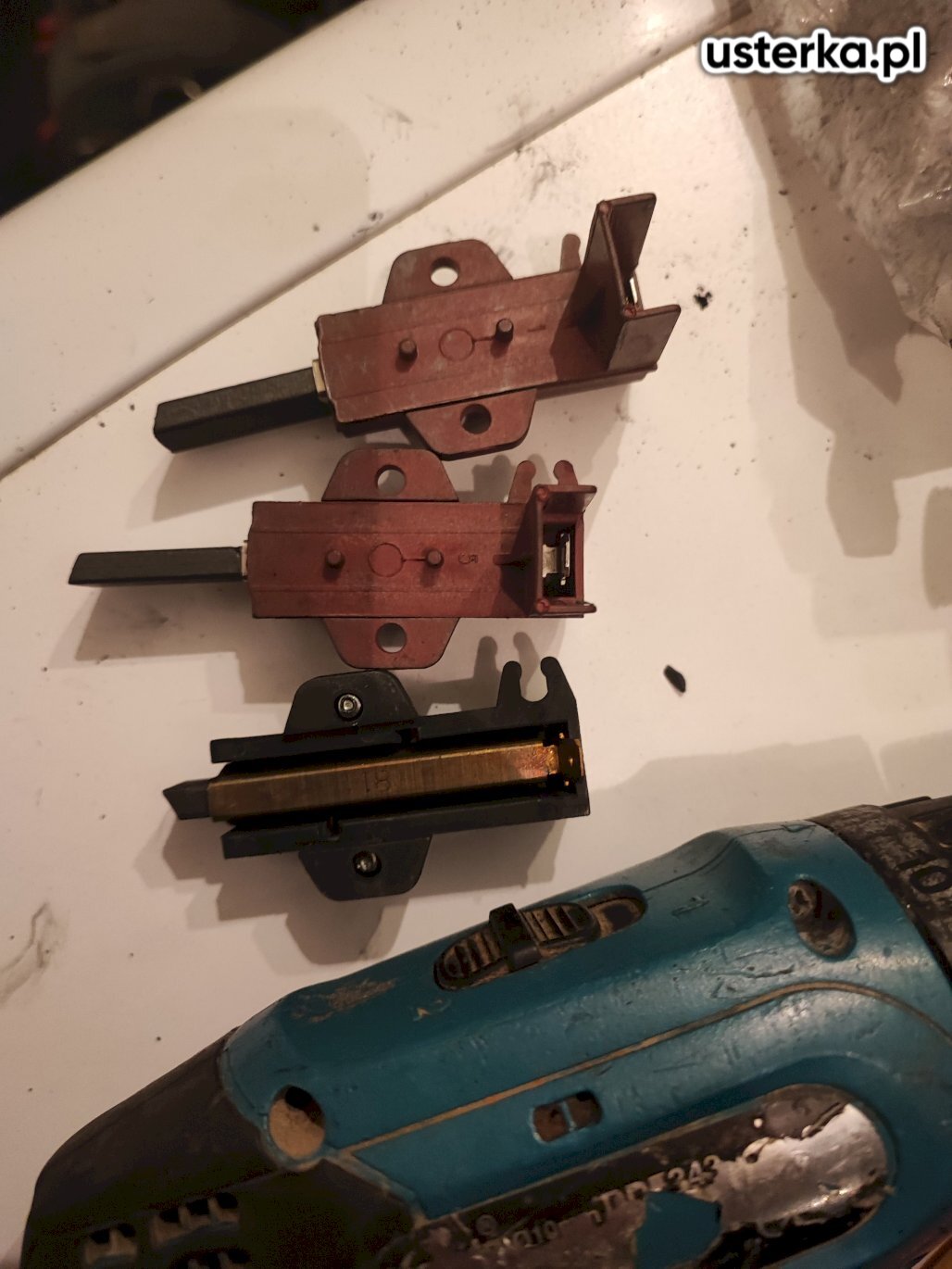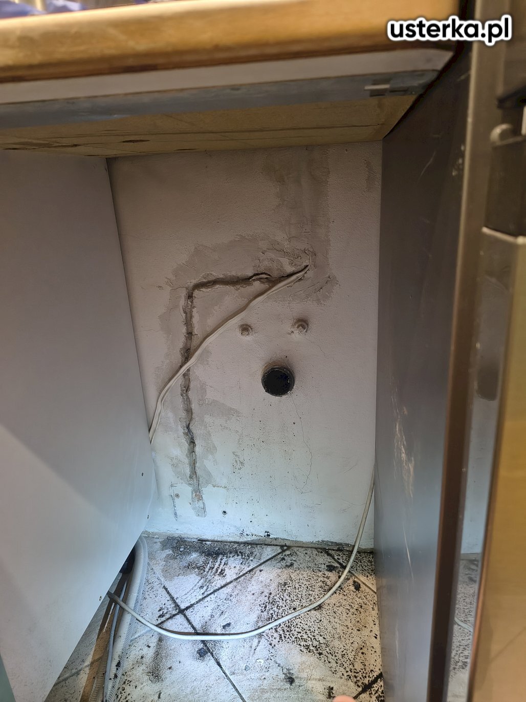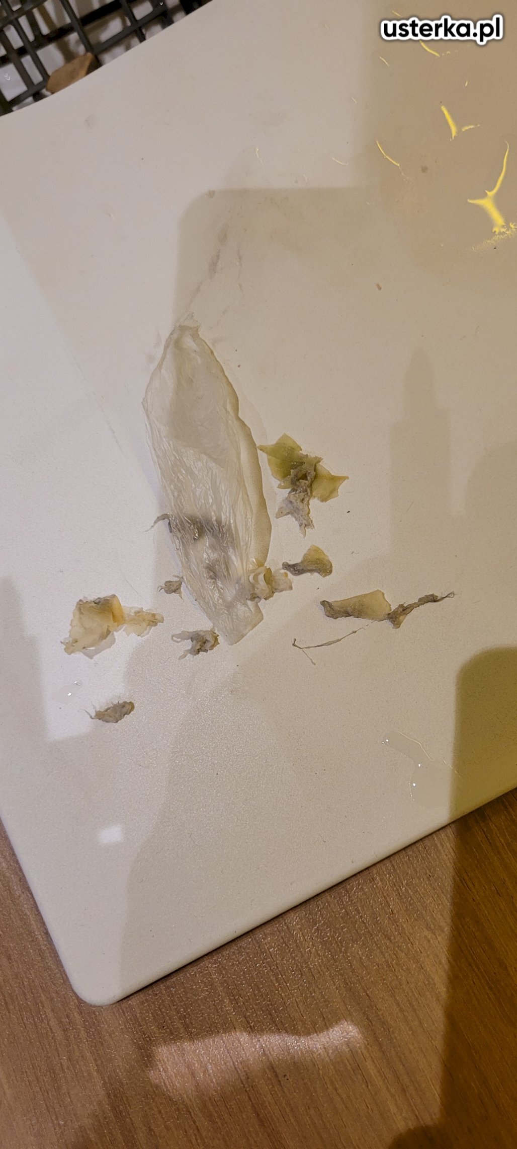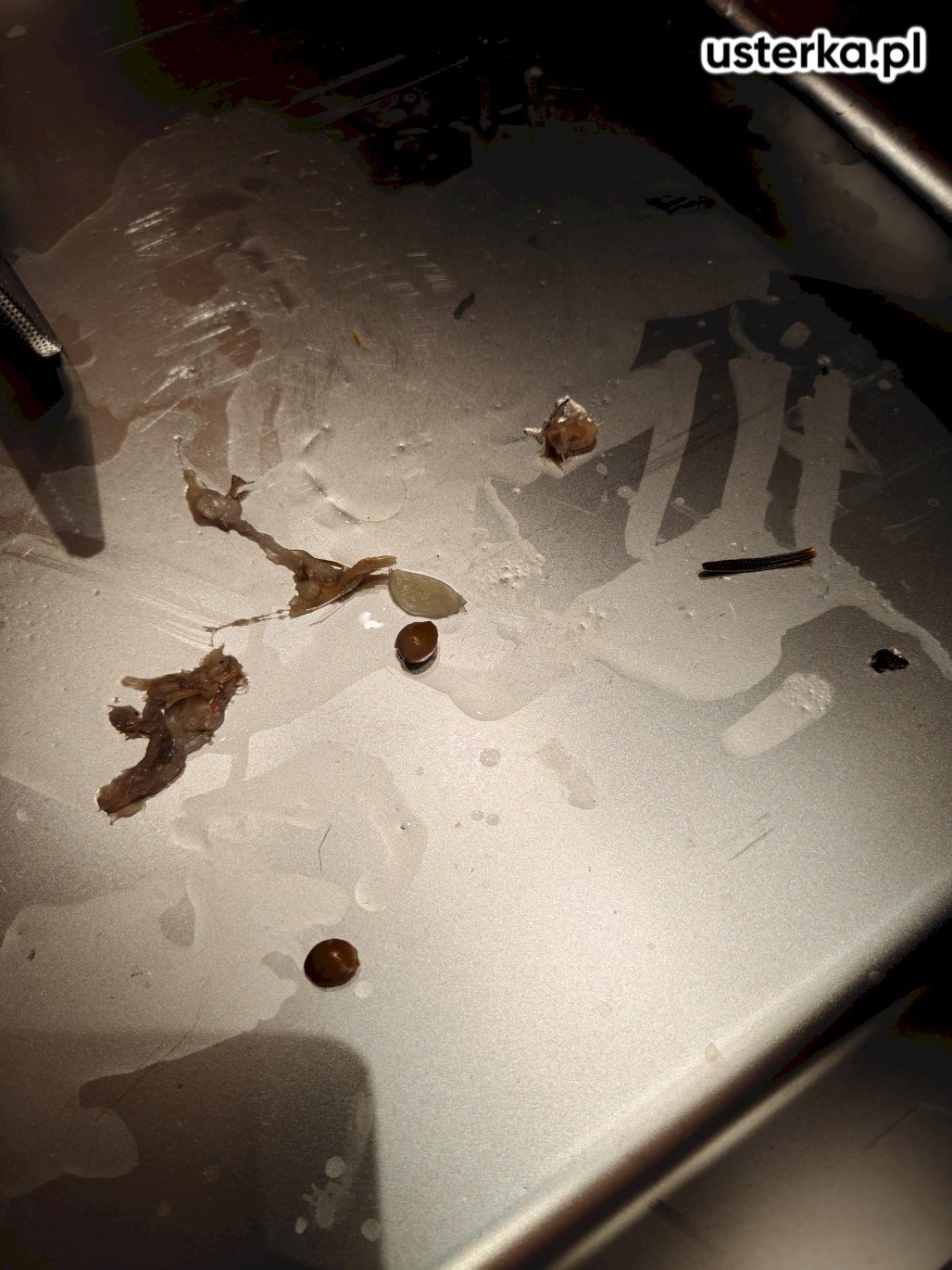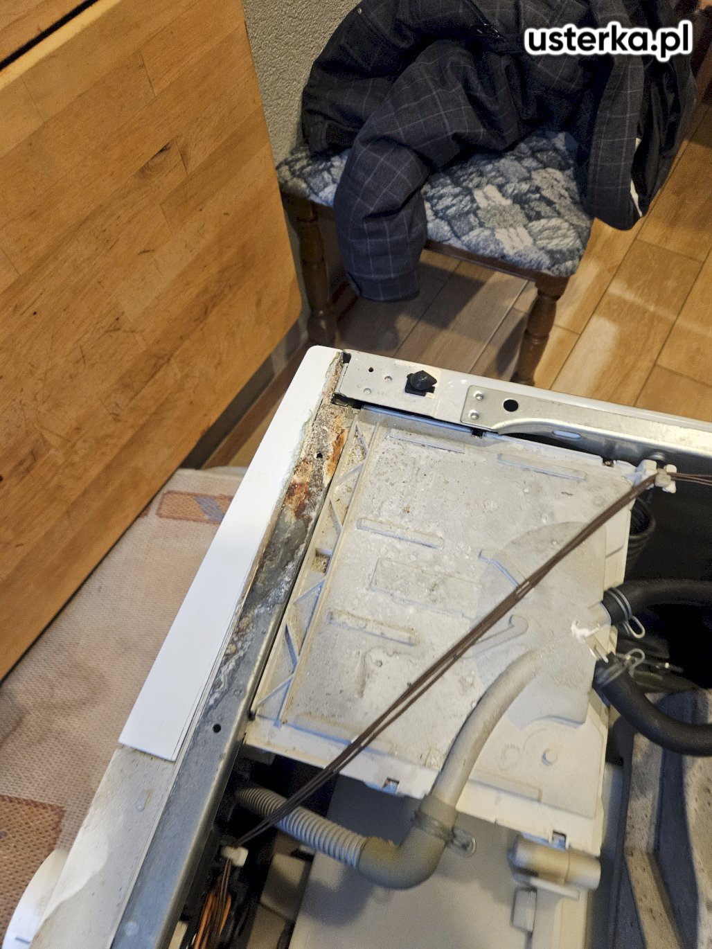 Na miejscu stwierdzono zardzewiały amortyzator oraz uszkodzenia innych elementów wewnętrznych spowodowane wyciekiem z szuflady.